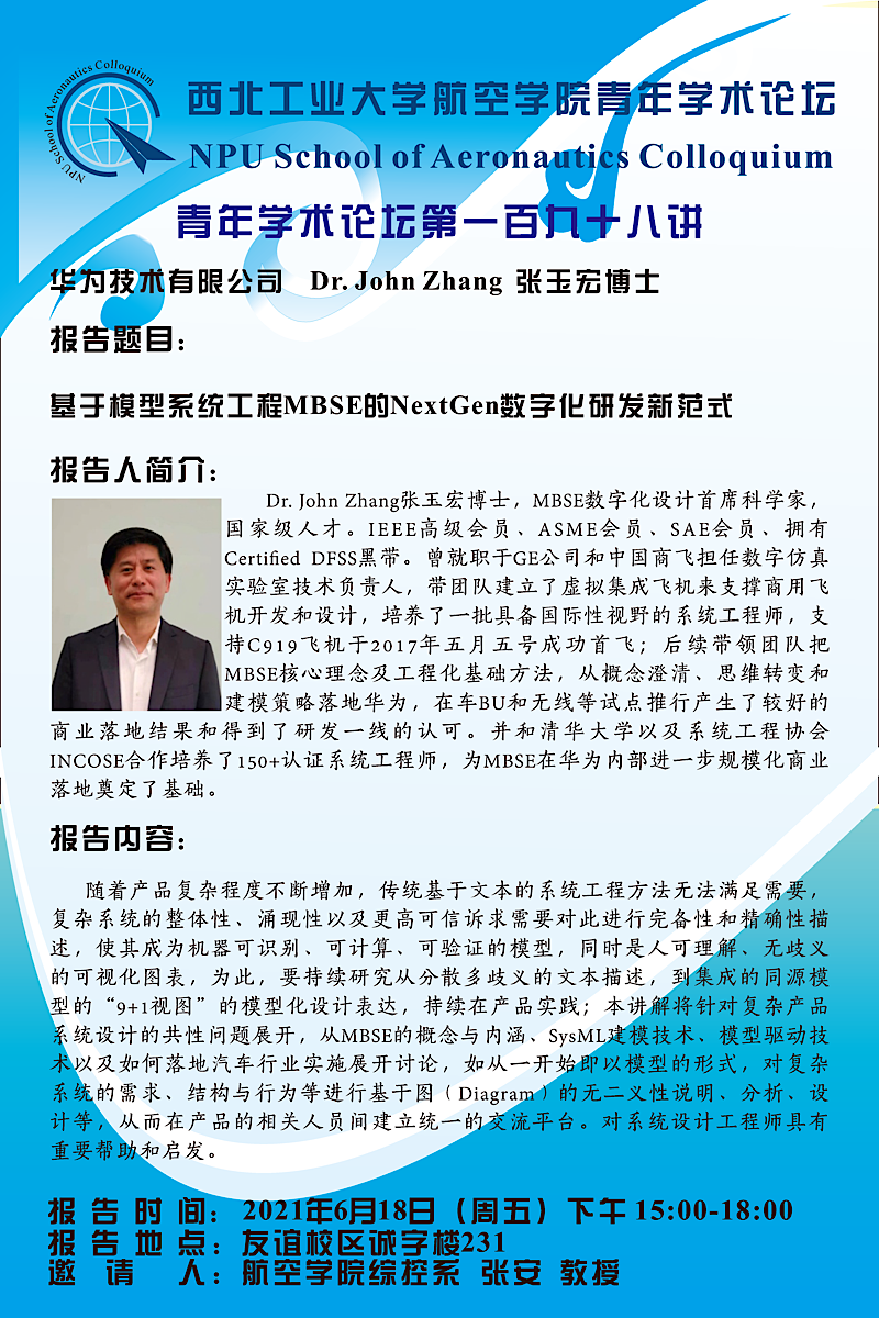 【学术报告】航空学院青年学术论坛198讲——华为技术有限公司 张玉宏 博士