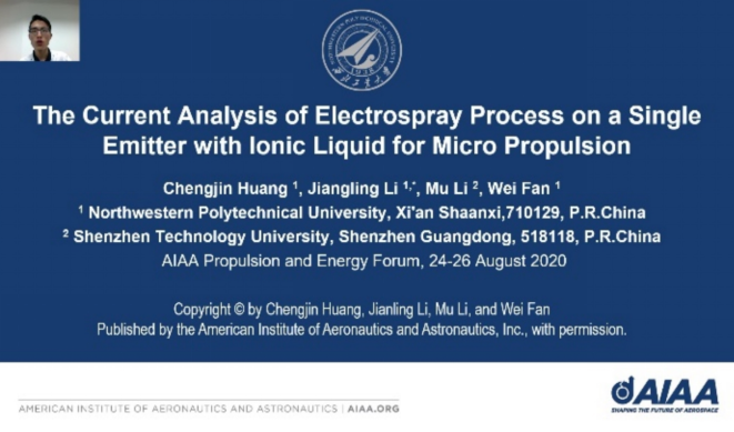 [4]Huang C, Li J*, Li M, Fan W. The Current Analysis of Electrospray Process on a Single Emitter with Ionic Liquid for Micro Propulsion[C]// AIAA Propulsion and Energy 2020 Forum. 2020. (EI: 20203909229188)