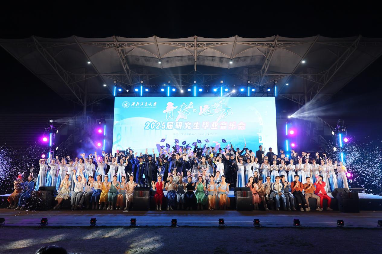 同期,在友谊校区也举办了2025届研究生毕业晚会。晚会由学工部主办,材料学院和航空学院承办,以“星耀研途 青春启航”为主题,友谊校区近千名师生在春色满园、生机盎然中,拥抱未来,奔向远方。