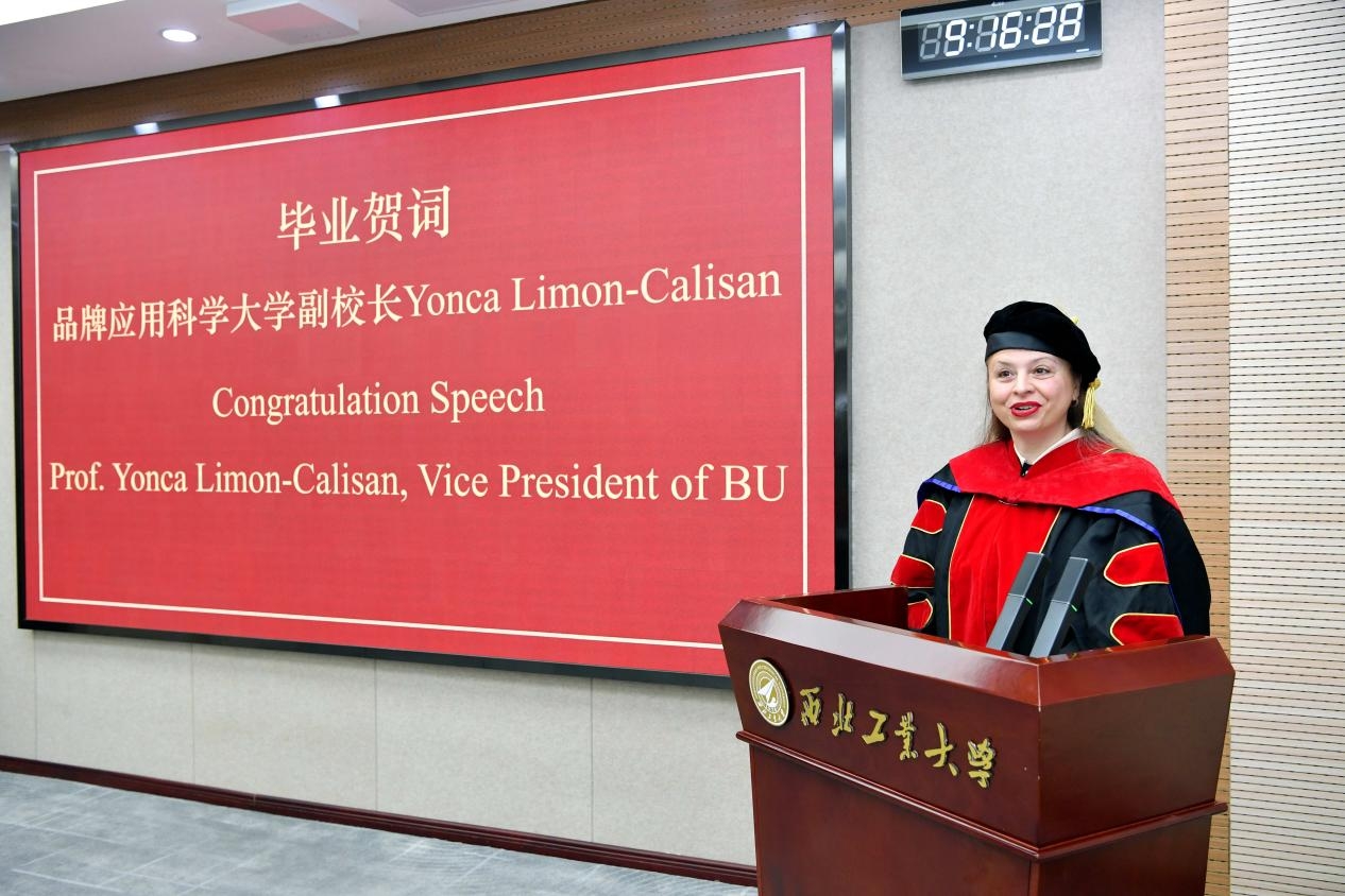 尤卡·莱蒙-卡利桑向毕业生致以诚挚的祝贺。她强调,中德合作办学项目是两所高校以及中德两国在教育领域合作的标志性成果,并勉励毕业生在未来岁月中勇攀高峰,成为跨文化交流的桥梁。