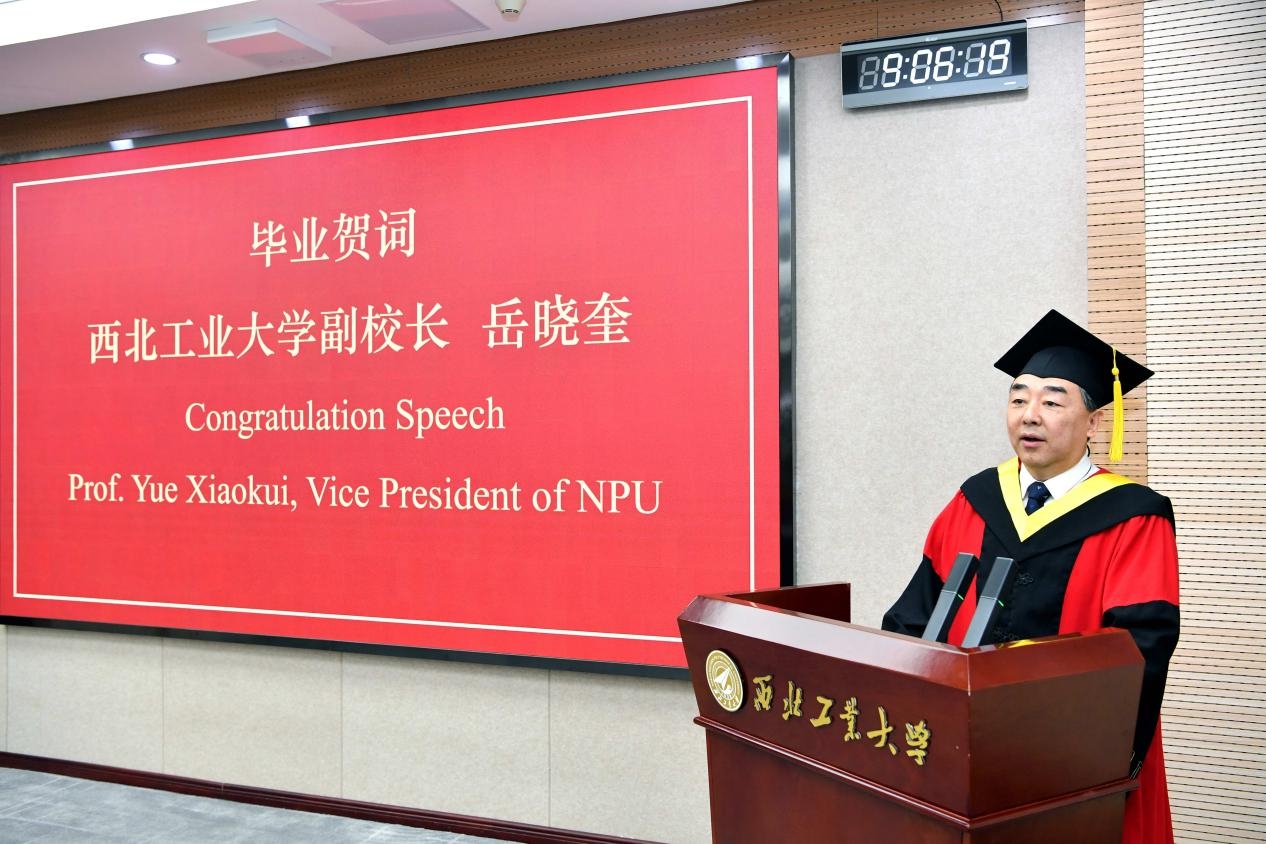 岳晓奎在致辞中向项目2025届毕业生表示祝贺,并勉励同学们牢记“公诚勇毅”校训和“三实一新”校风,在未来的人生道路上坚守初心、勇担使命;以感恩之心回馈社会,为国家发展贡献智慧与力量。