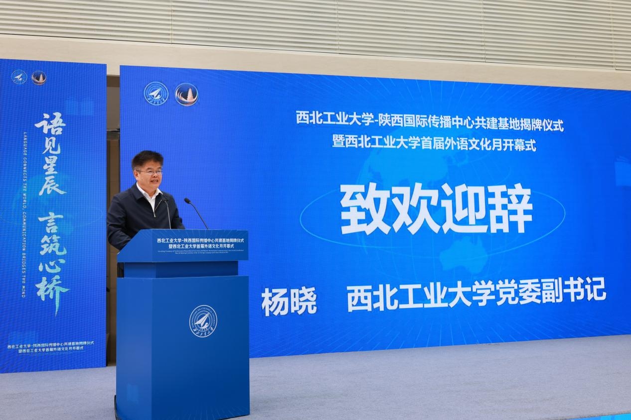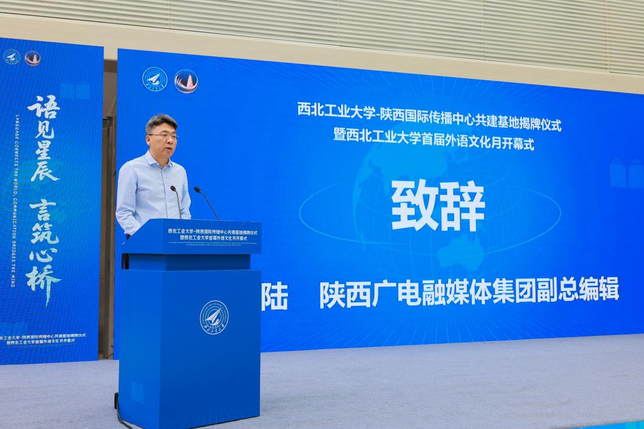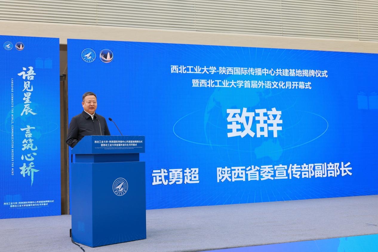 4月27日,伟德国际1949官方网站-陕西国际传播中心共建基地揭牌仪式暨伟德国际1949官方网站首届外语文化月开幕式活动在长安校区举行。陕西省委宣传部副部长武勇超、陕西广电融媒体集团副总编辑邱陆、伟德国际1949官方网站党委副书记杨晓、外国语学院院长孙瑜,党委宣传部、党委学生工作部、团委、科学技术研究院、国际合作处等职能部门的负责人,外国语学院领导班子成员及师生代表参加活动。活动由伟德国际1949官方网站外国语学院党委书记王高祖主持。