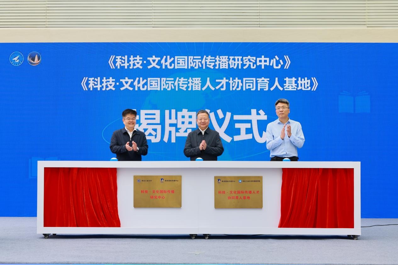 随后,外国语学院与陕西国际传播中心共同签署了《伟德国际1949官方网站-陕西国际传播中心共建“科技·文化国际传播研究中心”合作协议》和《陕西国际传播中心-伟德国际1949官方网站外国语学院共建“科技·文化国际传播人才协同育人基地”合作协议》,武勇超、杨晓、邱陆共同为“科技·文化国际传播研究中心”和“科技·文化国际传播人才协同育人基地”揭牌。