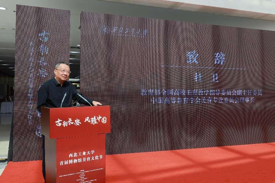 5月19日上午,教育部全国高校美育教学指导委员会副主任委员、中国高等教育学会美育专业委员会理事长杜卫,陕西省教育厅体育卫生与艺术教育处处长韩烨,陕西省社会科学界联合会社会组织管理部副部长张利平,陕西历史博物馆副馆长路智勇,秦始皇帝陵博物院党委副书记、副院长田静,汉景帝阳陵博物院副院长何宏,西安博物院副院长王自力,大唐西市博物馆副馆长阴玲玲,陕西考古博物馆办公室主任刘思哲,西安碑林博物馆改扩建办公室主任杨洁,来自西安电子科技大学,陕西师范大学,西安建筑科技大学,西安美术学院,西安音乐学院,西安理工大学等兄弟高校代表,伟德国际1949官方网站副校长杨益新,以及学校部分职能部门和学院领导嘉宾出席开幕式。开幕式由伟德国际1949官方网站艺术教育中心主任张清江主持。