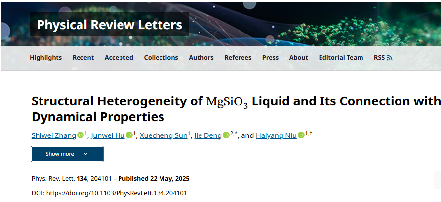 硅酸镁液相(MgSiO3liquid)是地球岩浆海洋的重要组成部分,其微观结构与动力学性质对深部地球的物质流动和物相演化具有决定性影响。深入理解该液相的结构特征,是阐释深地幔条件下硅酸镁熔体致密化机制和黏度异常行为的关键。然而,尽管已有诸多研究涉及硅酸镁液相,其原子尺度结构特征、致密化机制及与动力学性质之间的内在联系仍缺乏系统认知,黏度异常的结构起源也存在很大争议。
