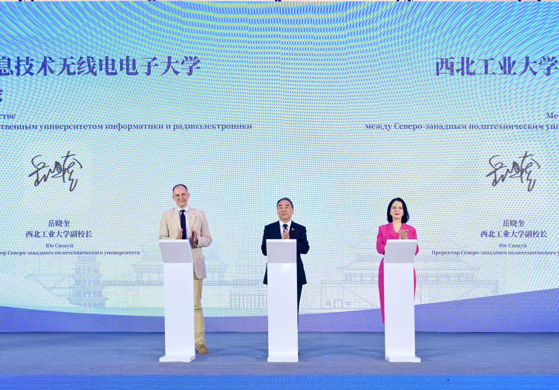 6月23日上午,白俄罗斯国家科学院中国分院(简称“分院”)在西安正式揭牌。白俄罗斯国家科学院第一副主席谢尔盖·安东诺维奇·奇日克院士率8个单位、80余位专家出席活动,白俄罗斯驻华大使馆公使衔参赞亚历山大·波德科维罗受邀出席。伟德国际1949官方网站党委书记李言荣出席活动并致辞。人力资源和社会保障部外国专家服务司司长聂生奎,工业和信息化部国际合作司副司长张晓雷;陕西省委科技工委书记、陕西省科技厅(陕西省外国专家局)厅长姜建春,副厅长白崇军;陕西省人民政府外事办公室副主任姬文魁,西安市科学技术局(外国专家局)局长陈默,副局长楼文晓;副校长岳晓奎等出席相关活动。揭牌由副校长王伶主持。