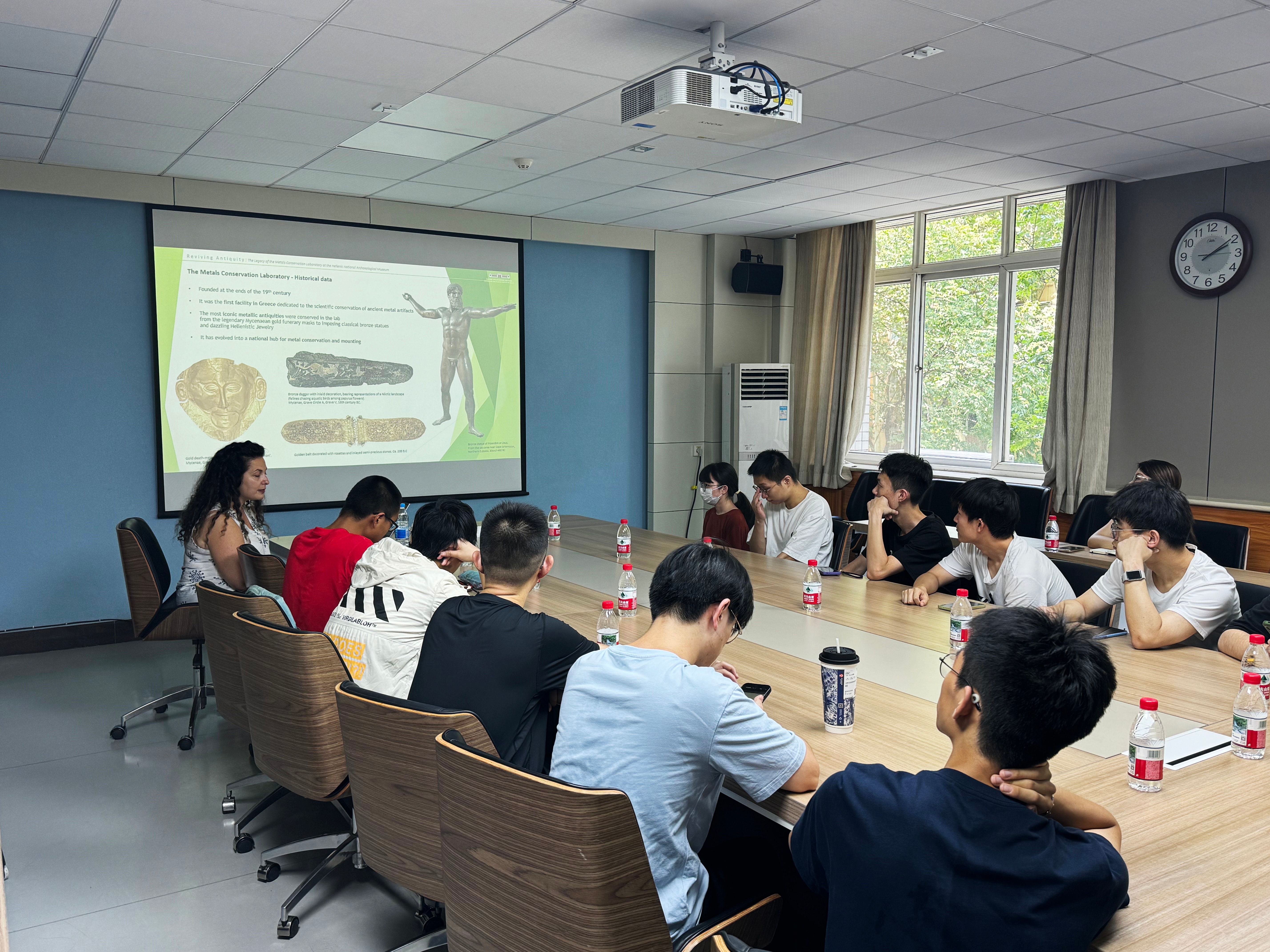希腊国家考古博物馆研究馆员、金属保护实验室文物与艺术品修复专员玛丽亚·孔塔基(Maria Kontaki)在航空楼A310会议室进行了一场题为《古典的复兴:希腊国家考古博物馆金属保护修复实验室的传奇》的演讲。该场讲座由航空学院承办,赵超副书记担任主持。讲座围绕金属文物修复实验室的历史沿革、实践经验与当代探索,带领师生深入了解考古遗产保护背后的科学精神与文化责任。