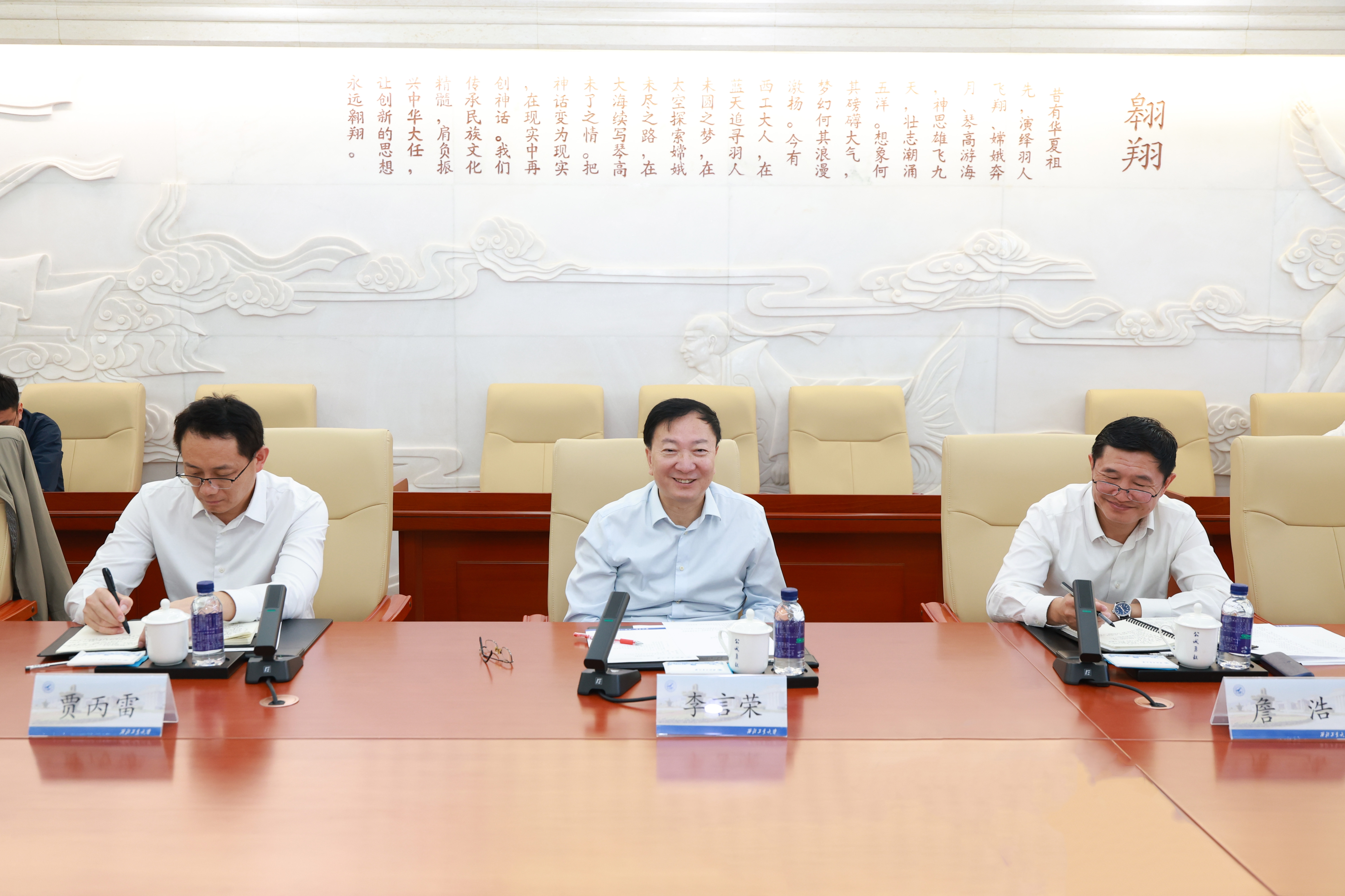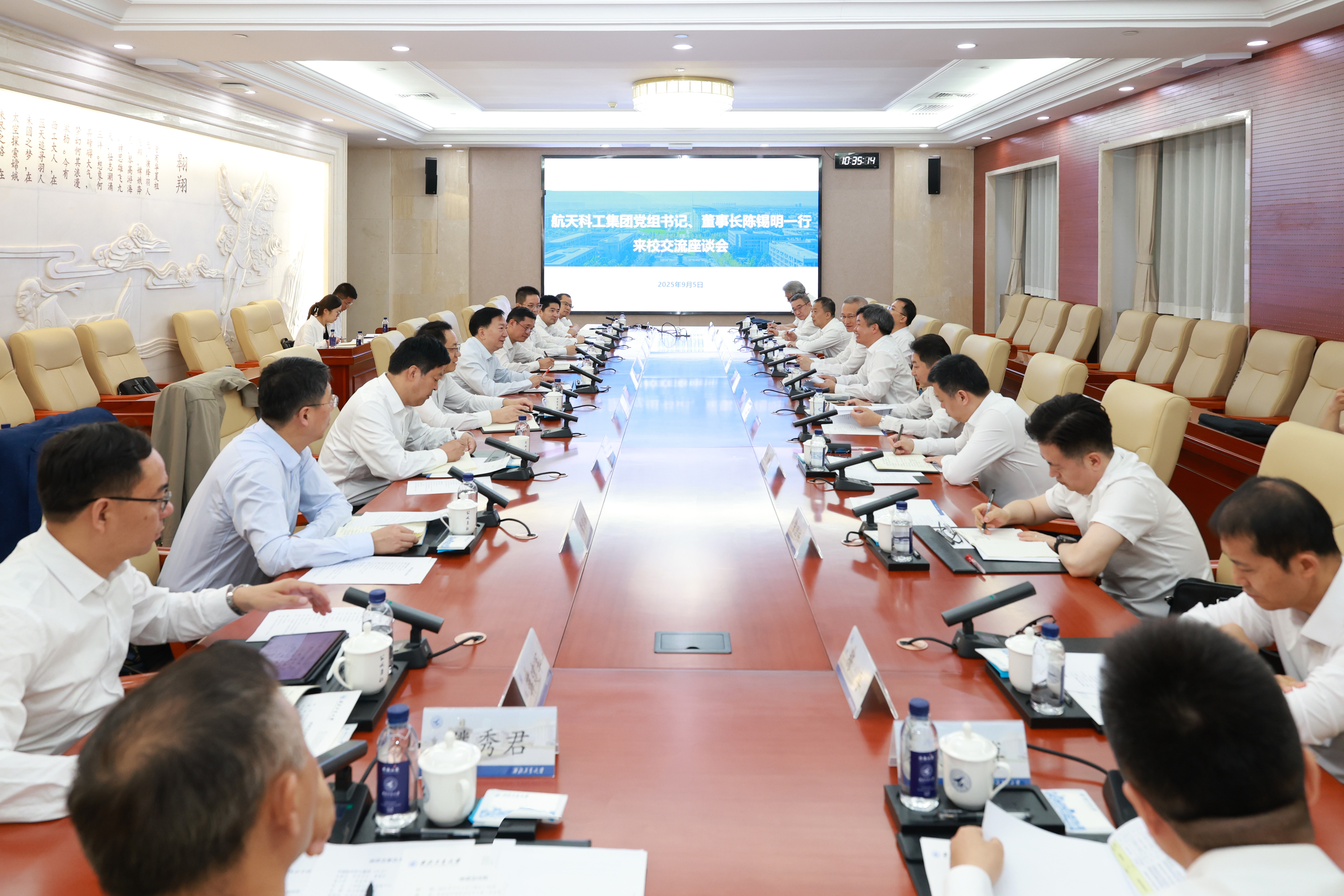 9月5日,中国航天科工集团党组书记、董事长陈锡明一行来校调研交流。校党委书记李言荣参加座谈会。座谈会由副校长詹浩主持。