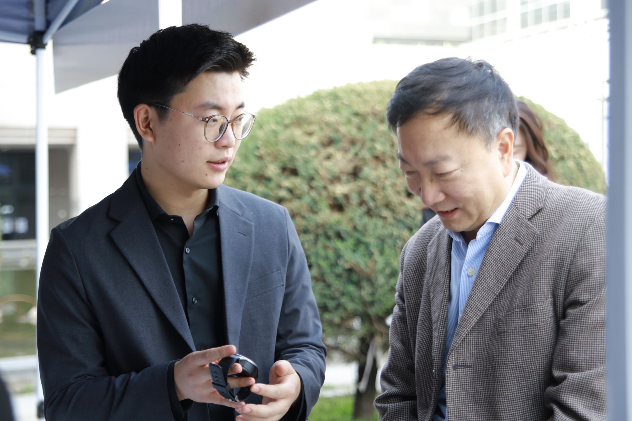 校党委书记李言荣在校园开展调研的过程中,观看了路演,并与项目学生负责人进行了交流,询问项目进展,鼓励参赛学生要坚守理想、矢志创新,树立科创报国志气,为国家科技自立自强、突破“卡脖子”技术多做贡献。