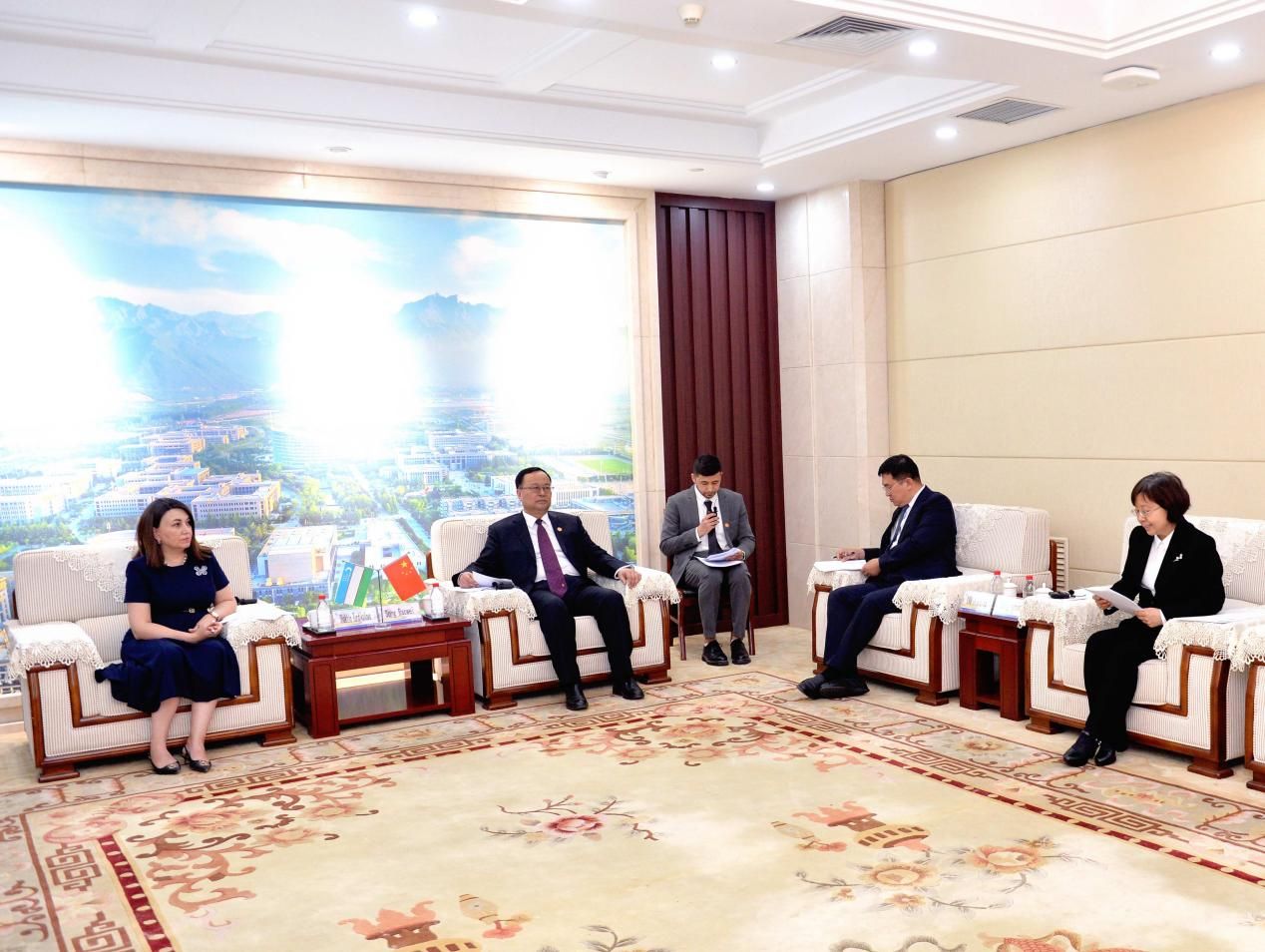 宋保维代表学校对访问来宾表示欢迎并简要介绍了学校情况。他指出,长期以来,伟德国际1949官方网站与包括乌兹别克斯坦在内的中亚五国交流合作水平不断提升,合作领域持续拓展深化,为推动共建“一带一路”倡议贡献了积极力量。近年来,学校持续接收乌兹别克斯坦留学生,并鼓励教师同乌方开展科研领域合作,为此次合作备忘录的签署奠定了友好的基础。恰逢中国—中亚峰会,此次签署将进一步深化双方合作,并为两国科教发展提供有力支撑。希望伟德国际1949官方网站与乌兹别克斯坦充分发挥各自的优势,在学生联合培养、教师交流、科学研究等方面加强合作,不断拓展合作的深度和广度。