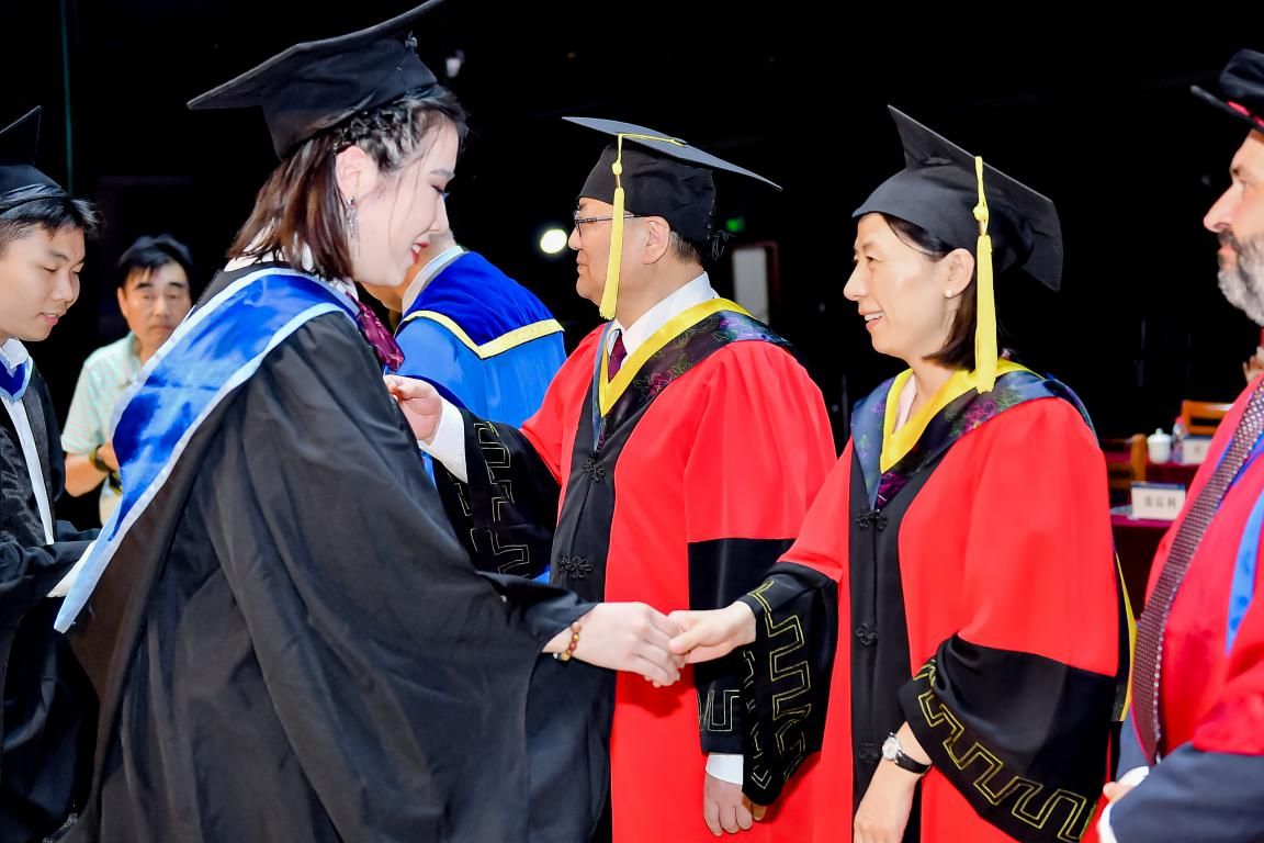 感恩师长后,Colin Bailey校长为邓欣茹博士颁发博士学位证书。邓欣茹博士于2019年在伦敦玛丽女王大学获得了材料科学博士学位,毕业后被聘任为QMES助理教授。她完美演绎了两所大学、两座城市、两个国家依托玛丽女王工程学院这一纽带共同追求学术卓越的友谊大使角色。
