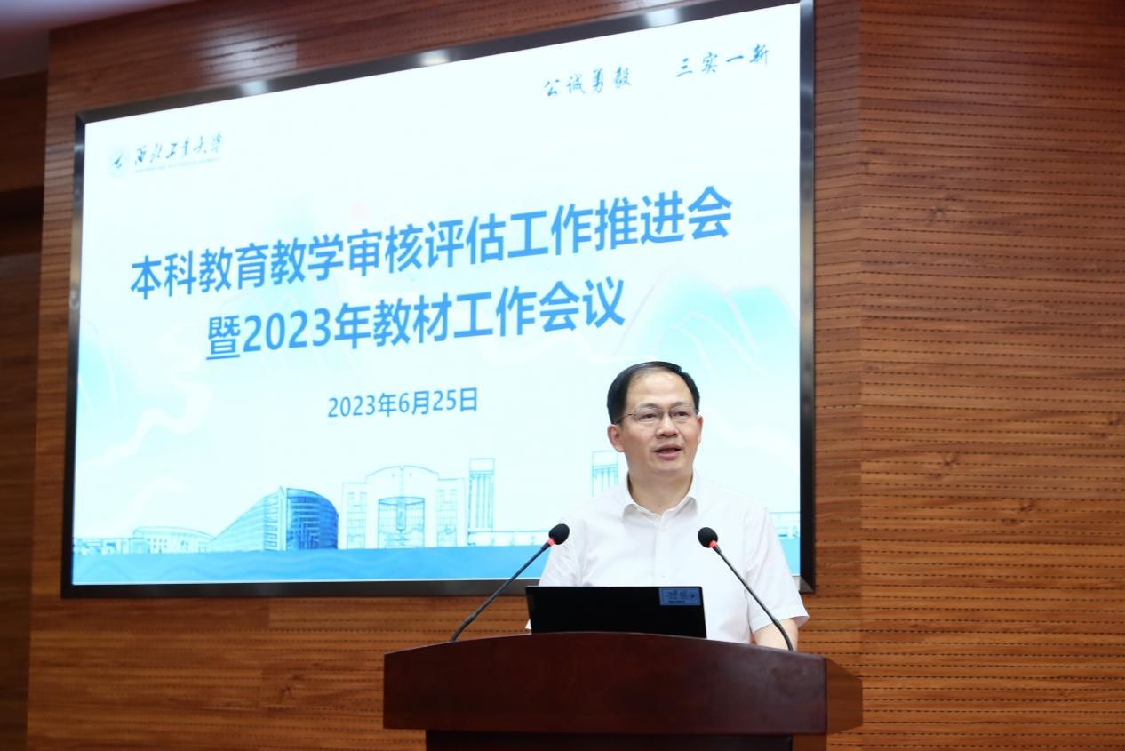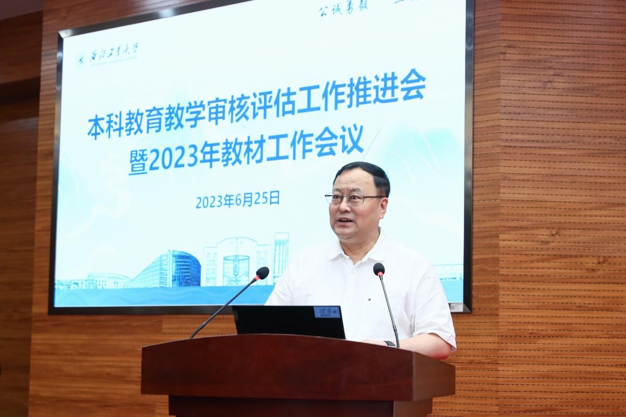 伟德国际1949官方网站新闻网6月25日电(文字 王翠萍 摄影 周军平)6月25日,伟德国际1949官方网站本科教育教学审核评估工作推进会暨2023年教材工作会在友谊校区举行。校长宋保维,副校长詹浩,校长助理兼学校办公室主任王宇波等参加会议。会议由副校长杨益新主持。