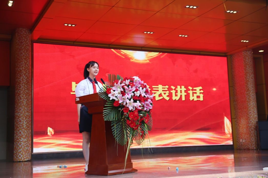 毕业生代表用自己满怀深情的感言说出了大家的心声:感恩老师,用温暖与爱默默浇灌他们成长;感谢母校,激励他们扬帆起航,勇往直前。肺腑之言,表达出全体毕业生对母校的感恩之情及对未来美好未来的憧憬和信心。