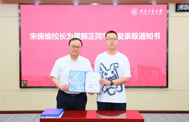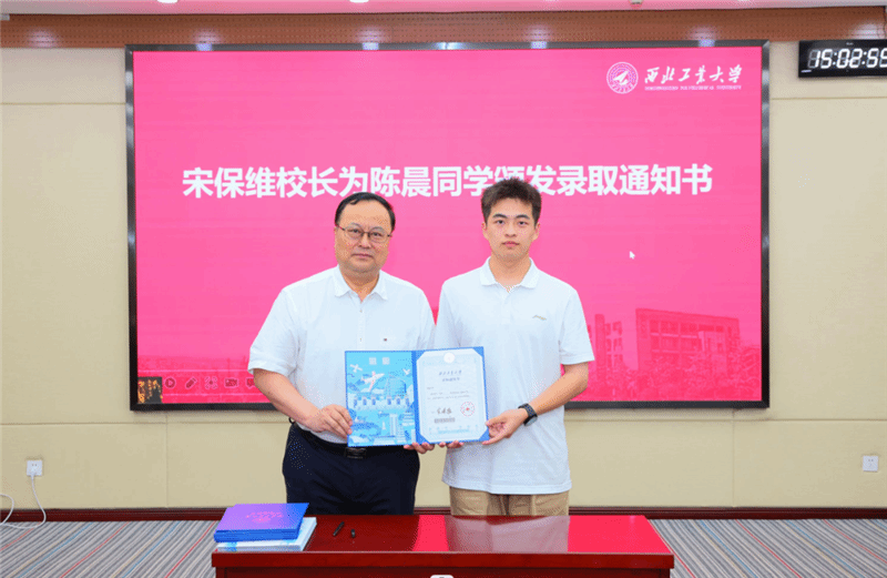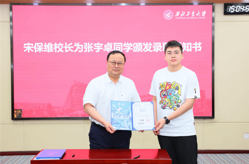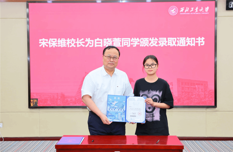宋保维为新生代表现场签名、颁发录取通知书,并向他们提出了殷切希望。