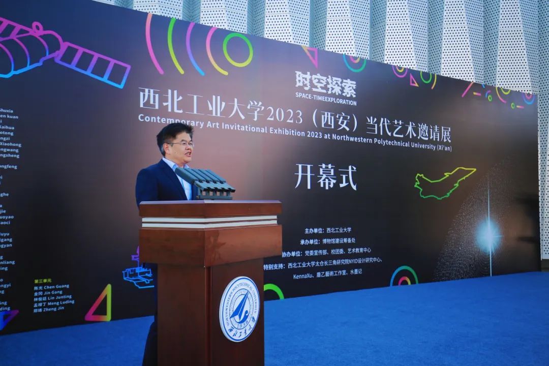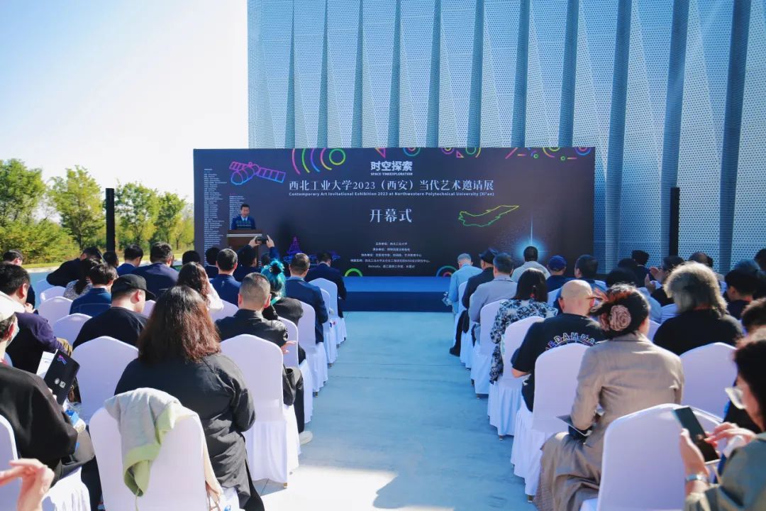 15日,“时空探索——伟德国际1949官方网站2023(西安)当代艺术邀请展”开幕仪式在军工素质教育实践中心(博物馆)举行。校党委副书记、党委宣传部部长杨晓与120余位校友、嘉宾出席开幕仪式。