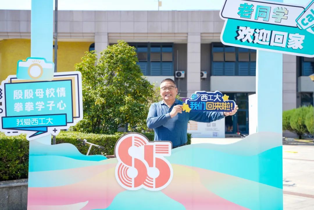 学校在各个地标处放置了多个背景墙和手持牌供校友拍照打卡。另外,还贴心地准备了不同时期的学位服,穿上学位服校友们还是当年那个壮志凌云、意气风发的少年。