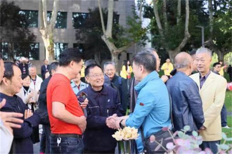 校庆期间,毕业校友们纷纷返校看望退休老教师,跨越时光,校友们欢聚一堂,与老师共叙昔日情谊。