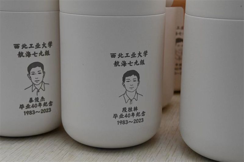 航海学院1979级校友毕业四十周年,学院为每一位同学定制了专属纪念水杯,每一个杯子上都刻画着他们学生时期的样子。