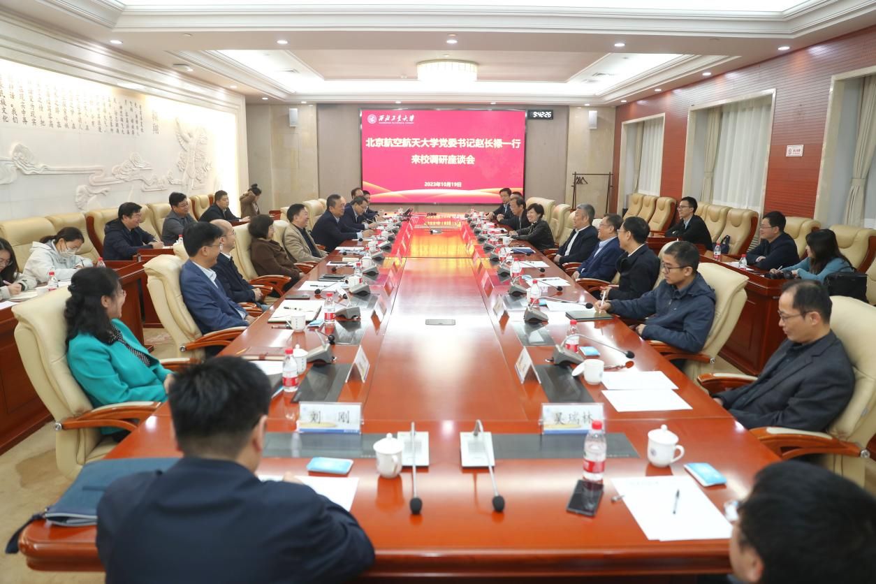 10月19日上午,北京航空航天大学党委书记赵长禄,副校长陶智、张海兰一行来校调研。伟德党委书记李言荣陪同参观调研,并与赵长禄一行进行会谈;副校长侯成义、张艳宁参加相关活动。座谈会由侯成义主持。