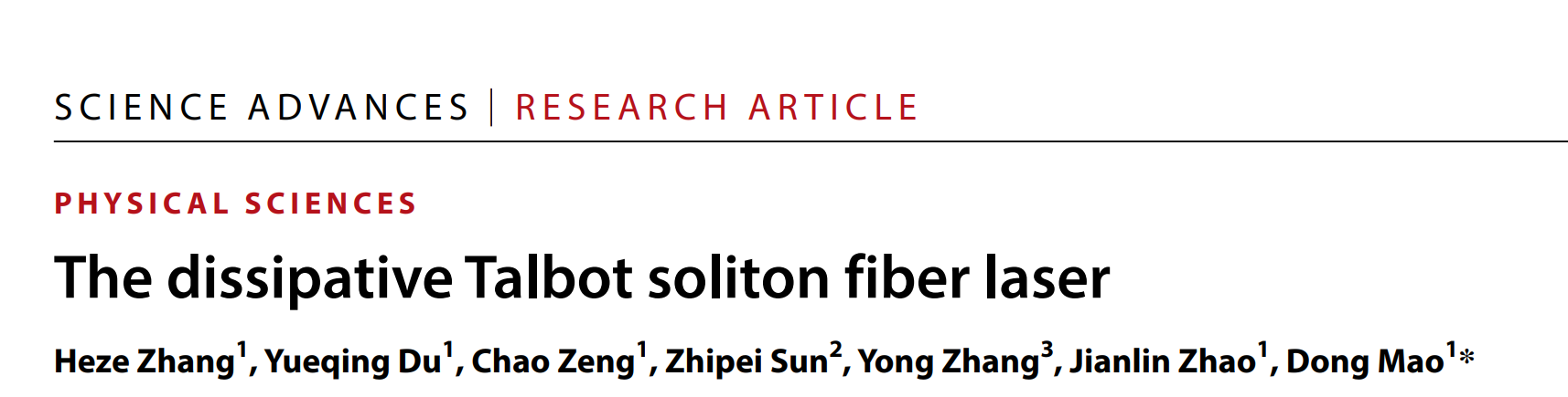 近日,伟德国际1949官方网站毛东教授、赵建林教授团队与南京大学张勇教授以及芬兰阿尔托大学孙志培教授合作在塔尔博特孤子锁模激光方面取得重要进展。研究成果以“The dissipative Talbot soliton fiber laser”为题发表在国际顶级学术期刊《Science Advances》(《Science》期刊的子刊)上,同时入选该期的特色图 (Featured image)。论文第一作者为在读博士研究生张何泽,通讯作者为毛东教授。论文链接:https://www.science.org/doi/10.1126/sciadv.adl2125