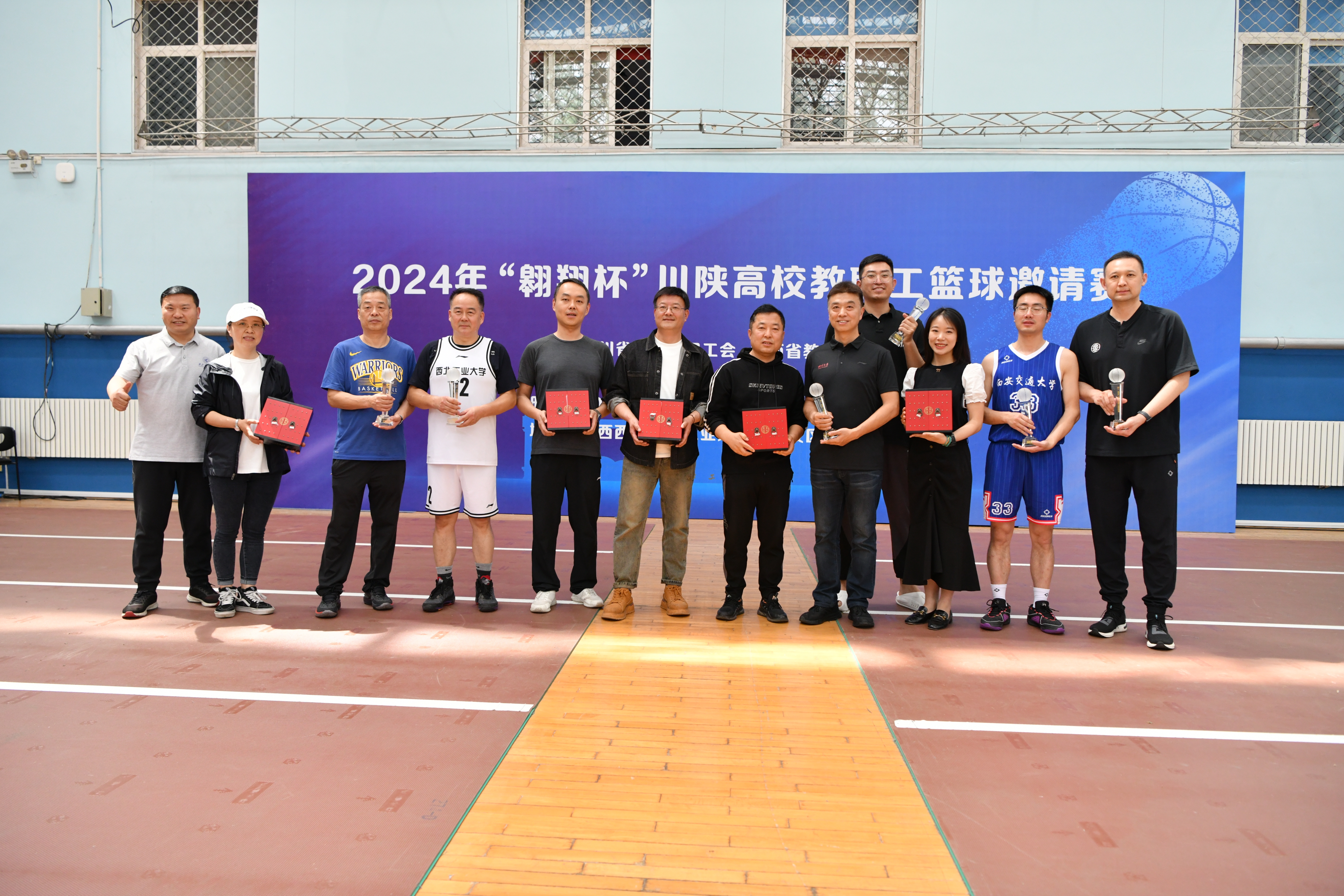 4月14日中午12:40,随着一声哨响,最后一场比赛落下帷幕,本次教职工篮球邀请赛胜利结束。按照本次赛程和奖项设置,六所高校球队不计名次,在最后举行的颁奖仪式上,六所高校的工会主席分别向六所高校球队颁发了象征友谊和合作的“翱翔杯”,寓意川陕六所高校在进一步加强在人才培养、科学研究、服务社会等方面的深度交流与合作,携手为振兴西部高等教育、促进经济社会发展贡献更大的力量。