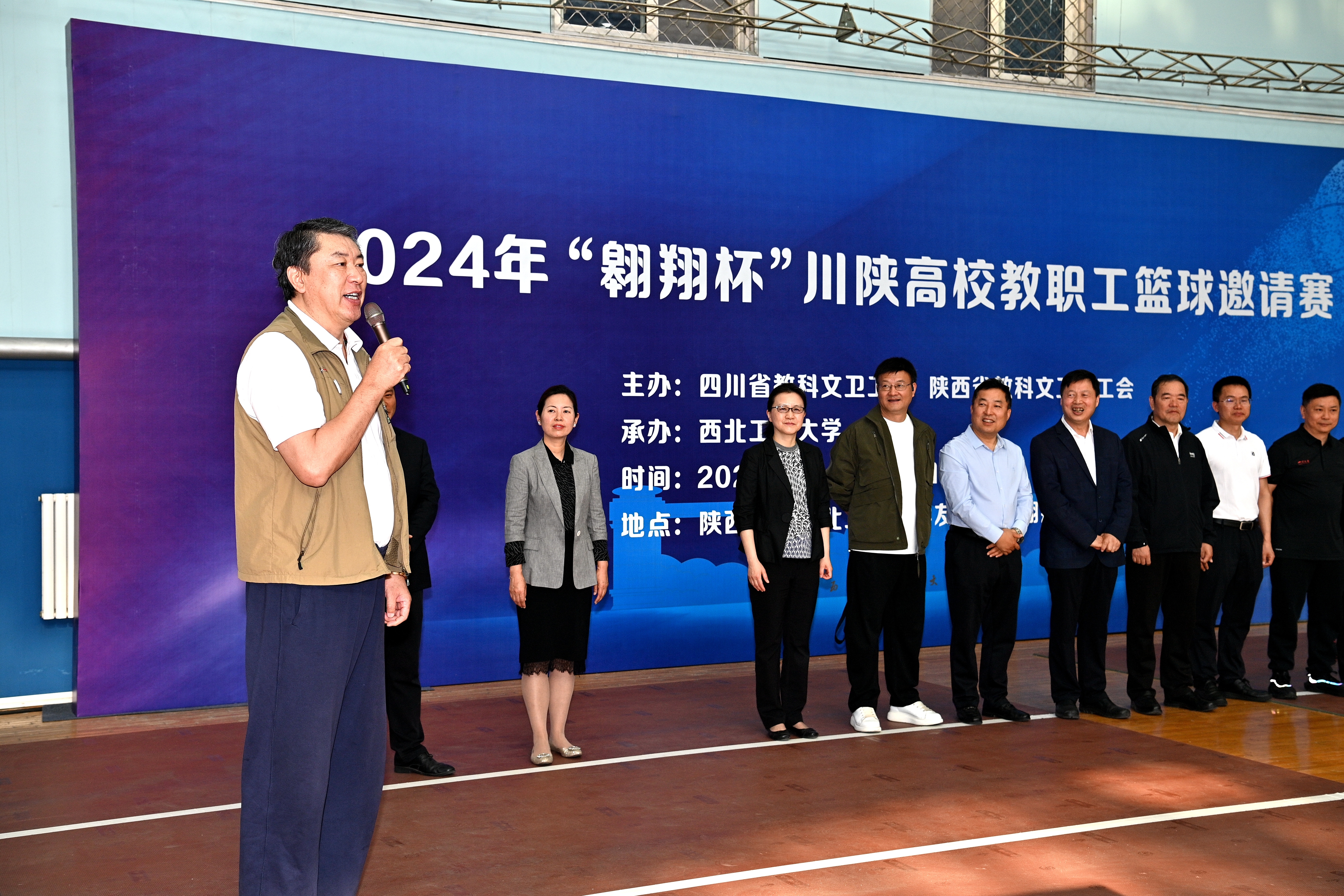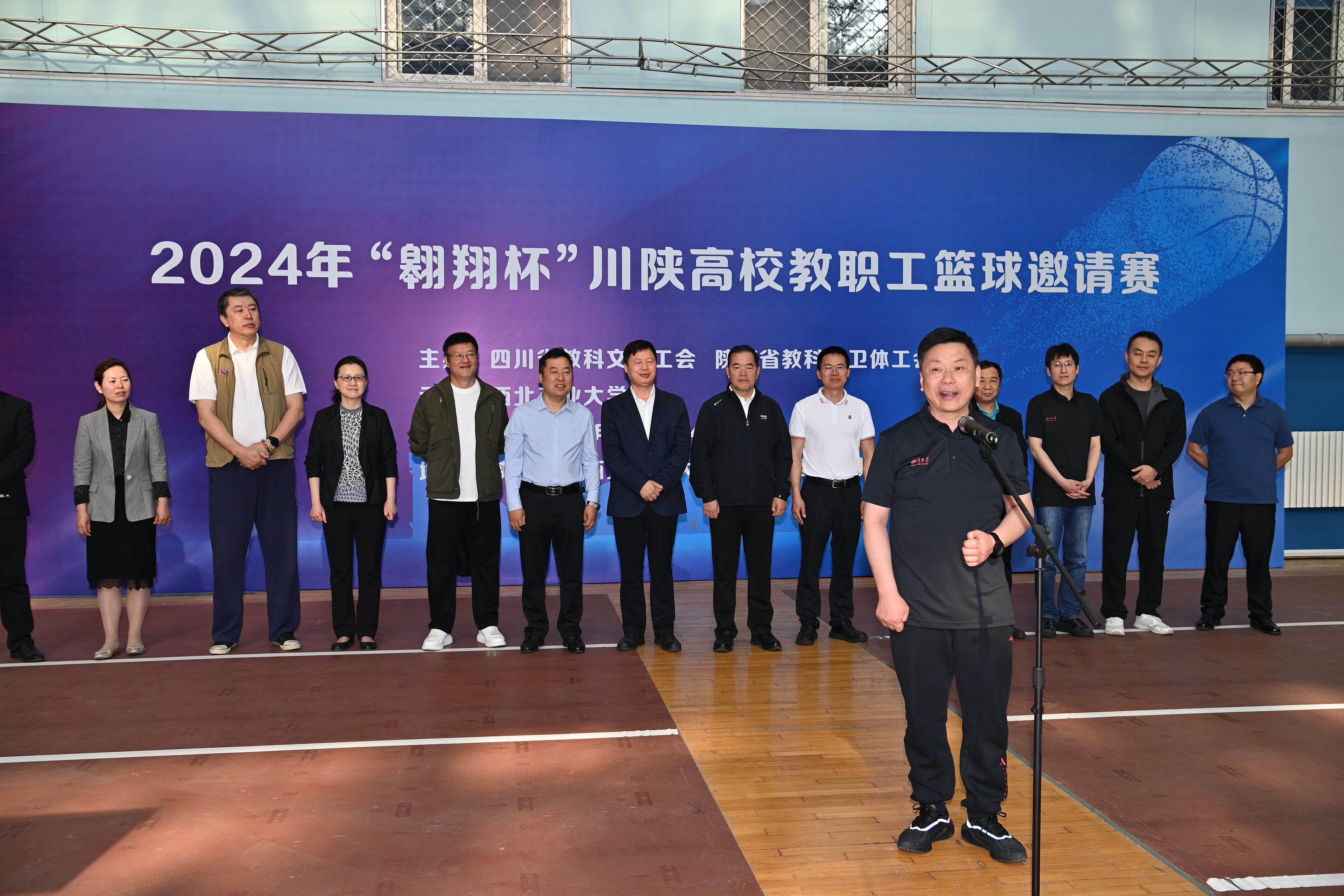 陕西省篮球协会主席王立彬,本次赛事发起方代表、四川大学工会常务副主席袁斌先后发言。