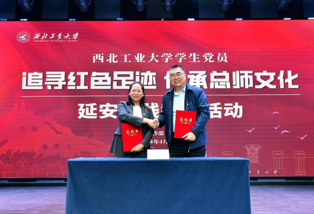 闫育周代表党委组织部、党委学生工作部,吴蓓代表全国青少年延安革命传统教育基地共同签署《关于共同建设学生党员实践教育合作基地的协议》,以基地的建立为牵引,凝聚合力协同育人,保障活动高质量开展。