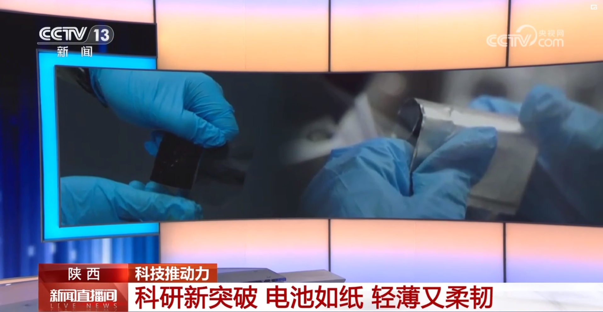 5月4日,央视新闻频道(CCTV13)《新闻直播间》在“科技新突破 电池如纸 轻薄又坚韧”专题中报道了柔性电子研究院科研团队研制的新型电池科研成果。报道如下: