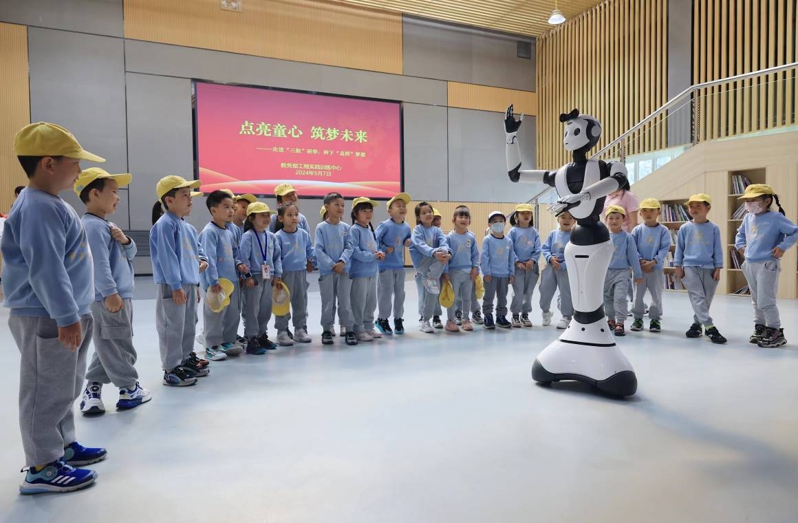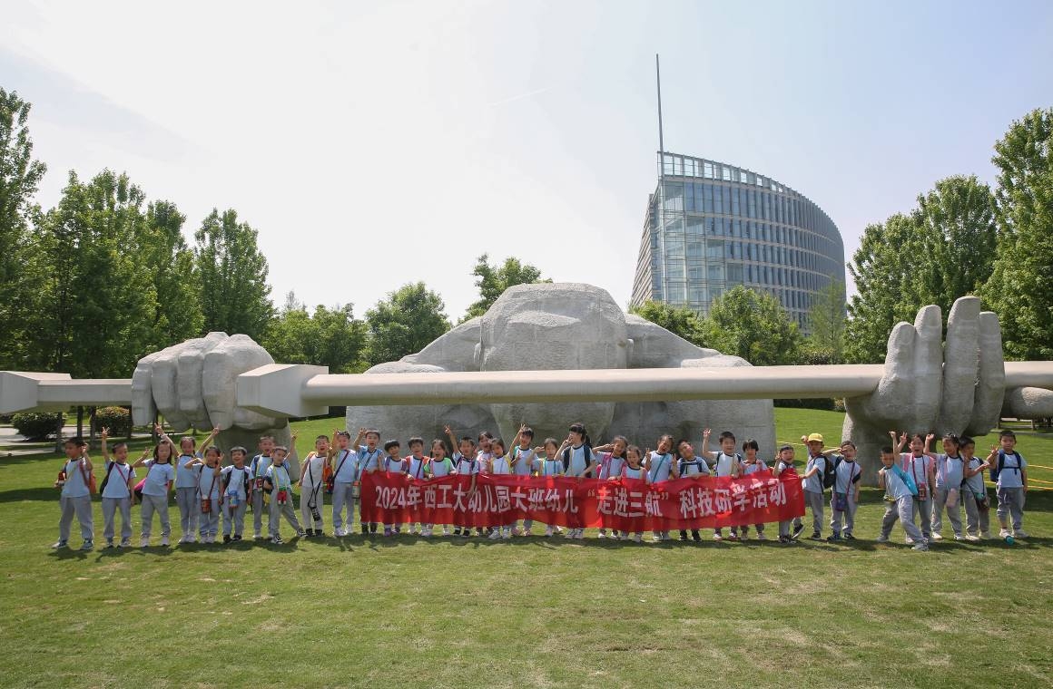 5月的微风奏响了初夏的乐章,伟德国际1949官方网站幼儿园大班的小朋友们带着好奇与向往,走进伟德国际1949官方网站长安校区,开启了一场充满科技与文化气息的快乐“三航”研学之旅。