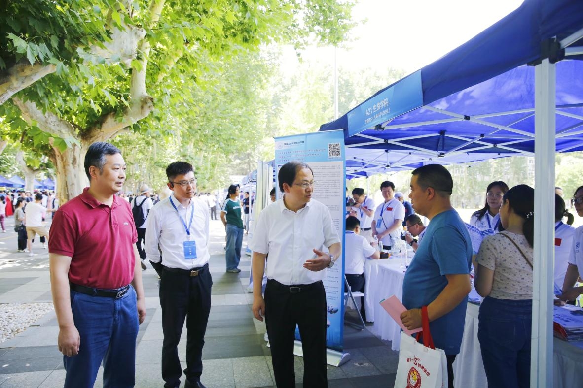 副校长杨益新到活动现场指导工作,他对前来参会的高校及广大考生家长表示欢迎,对学校各部门、学院参会老师表示感谢。他指出,校园开放日是向社会展示学校办学实力的有效途径,更是学校吸引优质生源的大好机会,为“总师”型人才之源提供了强有力支撑。