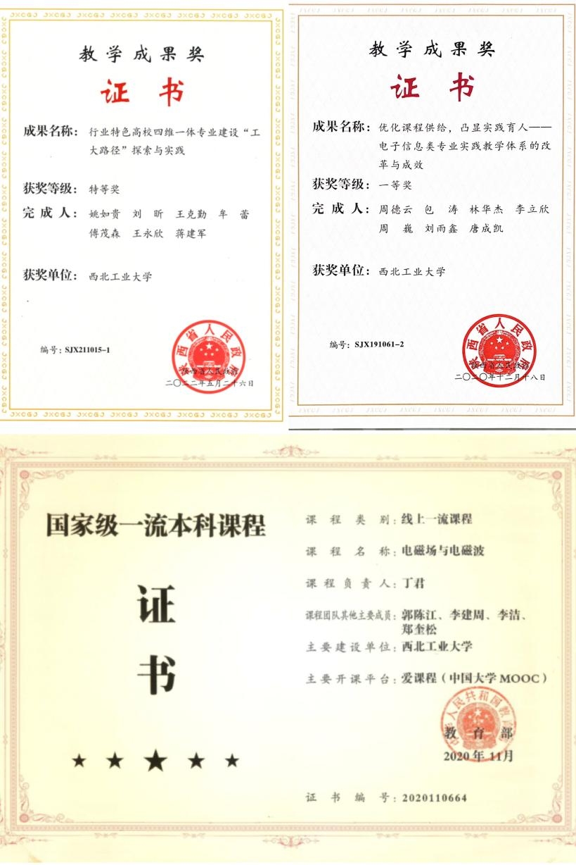 学院主建的一级学科信息与通信工程进入全国A类。获国家教学成果二等奖1项;陕西省教学成果特等奖、一等奖、二等奖各1项;获批国家级一流专业建设点3个,国家级一流课程4门,陕西省一流课程12门;出版教材36部,其中国家级精品教材1部、国家级规划教材3部、国防特色教材4部、工信部规划教材6部;入选教育部学位与研究生教育发展中心主题案例库2项、陕西省专业学位研究生教学案例库3项;获批工信部示范协同育人基地。