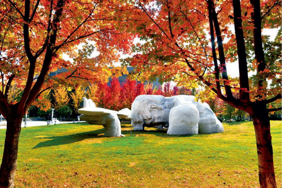 伟德国际1949官方网站修缮一新的长安校区勇士雕塑(2023.10)