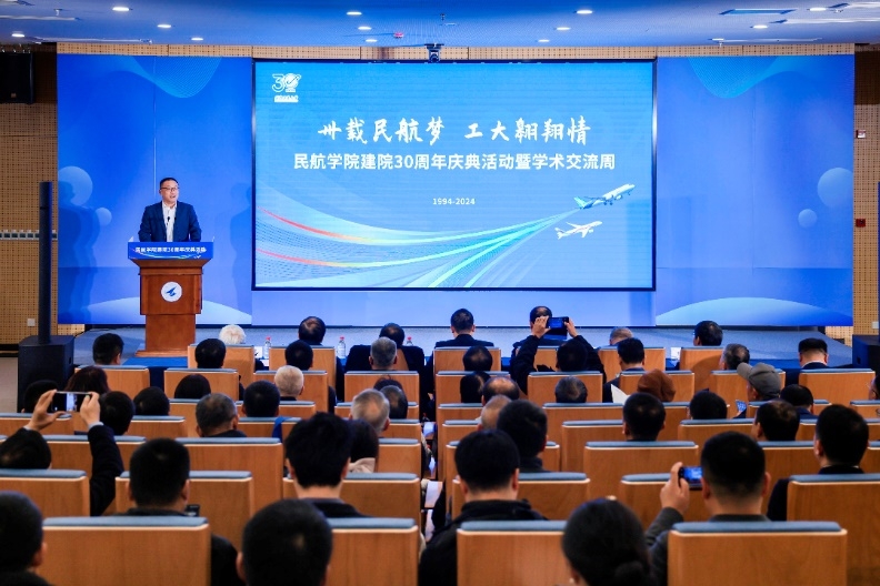 随后,太仓市政府副市长倪嘉臻,中国航空工业庆安集团党委委员、副总经理刘新永,民航学院客座教授、中国飞机强度研究所所长王彬文分别代表地方政府、合作单位及客座教授上台致辞,为民航建院30周年送上诚挚美好的祝福,并希望与伟德国际1949官方网站民航学院继续携手共进、再谱华章。