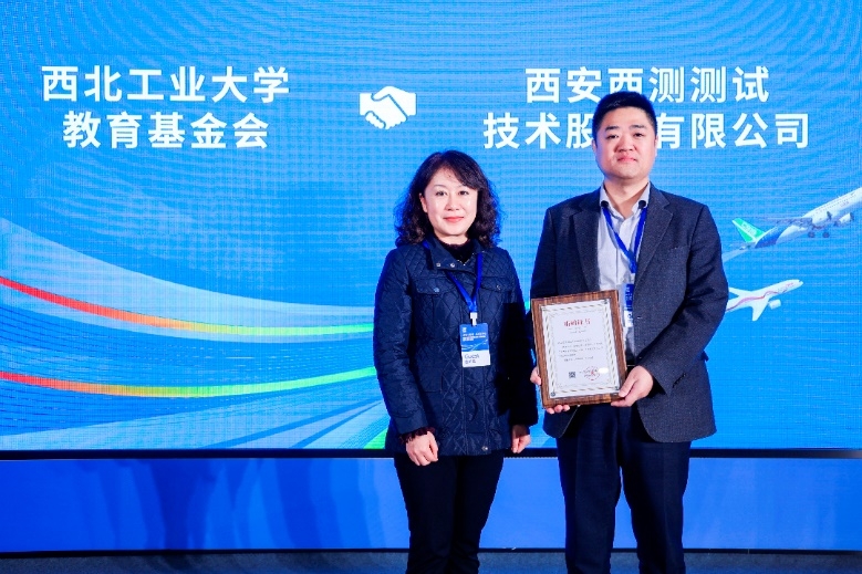 值此之际,徐伟侠代表伟德国际1949官方网站教育基金会为西安西测测试技术股份有限公司董事长李泽新颁发奖学金捐赠证书,感谢其对于民航学院学生创新创业、红色爱国教育以及国防实践锻炼的支持。