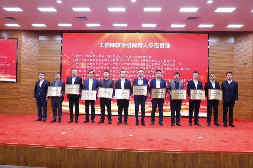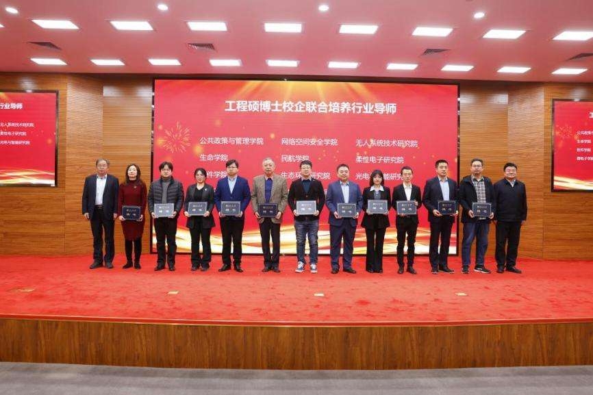 在颁奖环节,参会领导为工信部工程硕博士8名优秀导师颁奖、10个工信部校企协同育人示范基地授牌、23位行业导师代表颁发聘书。