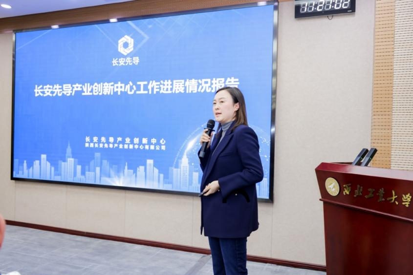 陕西长安先导产业创新中心有限公司王瑾副总经理作了题为“陕西长安先导产业创新中心介绍”的主旨报告,介绍了中心的使命目标,以国家重大战略、行业未来发展和产业链安全三大需求为导向,围绕人工智能、航空航天等关键领域,发挥资源整合作用,搭建一系列科技攻关平台与开展科技成果转化的举措与成效。