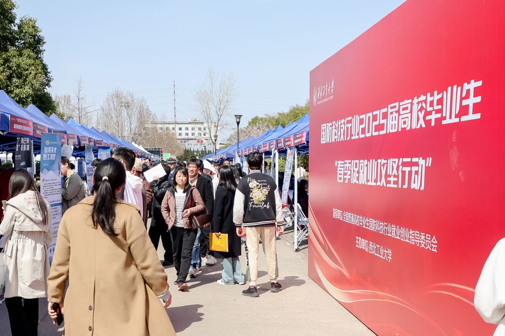 3月20日,在伟德国际1949官方网站举办的招聘会现场,设置国防科技行业专区。