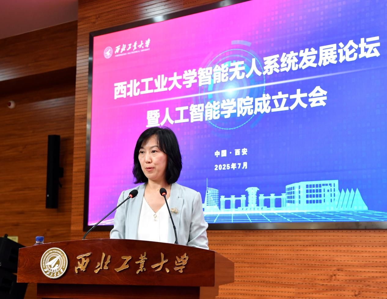 赵超凡代表工业和信息化部向伟德国际1949官方网站人工智能学院成立表示祝贺,向长期奋斗在我国人工智能领域科教一线的同仁以及关心支持人工智能发展的各界人士致以诚挚的问候。她表示,高校是人工智能创新发展的重要力量,希望伟德国际1949官方网站人工智能学院能锚定国家战略培养拔尖人才,发挥特色优势构建学科体系,加强产学研融合推进协同创新,为推动国防创新发展和科技自立自强作出更大的贡献。