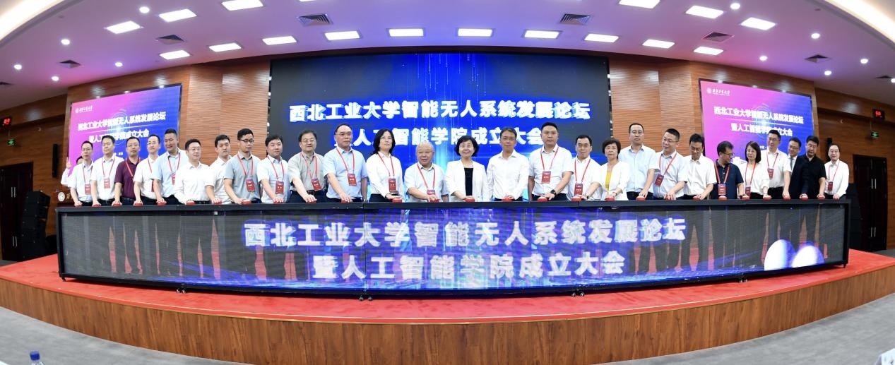 副校长詹浩宣读智能无人系统创新联盟宣言。张艳宁与联盟成员单位:航天科技、航天科工、航空工业、中国船舶、中国兵器、中国电科集团等行业研究院所企业;南京大学、中国科学技术大学、国防科技大学、华中科技大学、西安交通大学、北京航空航天大学、北京理工大学、湖南大学、电子科技大学、南京航空航天大学、西安电子科技大学、哈尔滨工程大学等高校人工智能学院、智能研究院;中国电信(陕西)、中国移动(陕西)、中国联通(陕西)、科大讯飞、中煤航测遥感集团有限公司、国家超级计算西安中心、芯派科技股份有限公司等企业代表共同为智能无人系统创新联盟揭牌。