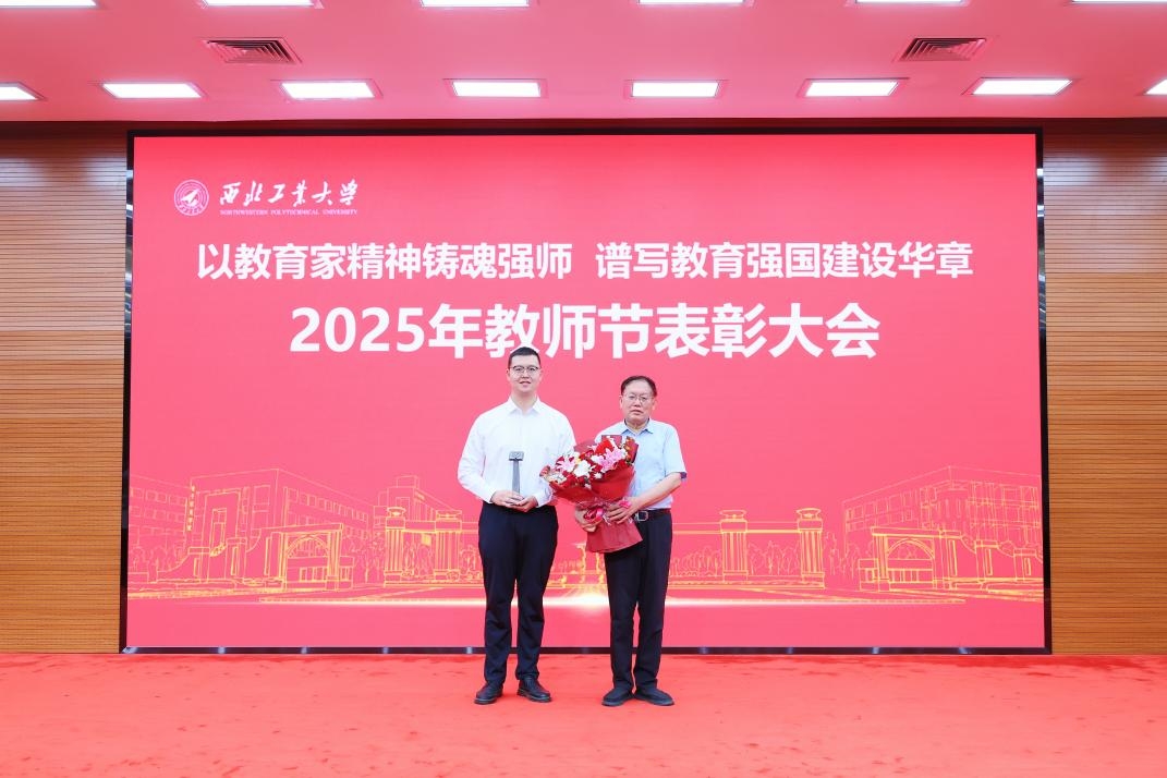 副校长杨益新为获得陕西省科学技术一等奖的教师代表颁奖。