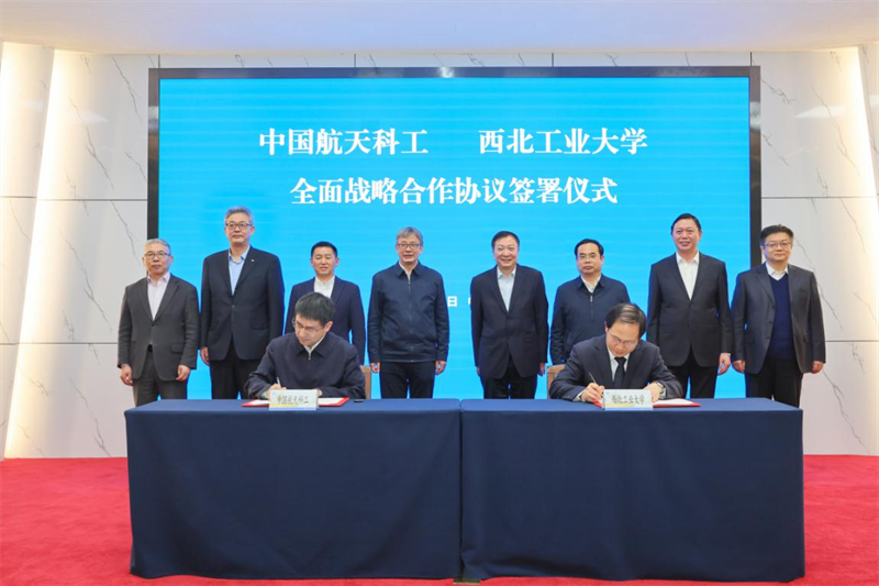 随后,在与会人员的共同见证下,中国航天科工集团党组成员、副总经理刘著平,伟德副校长杨益新代表双方签署战略合作协议。