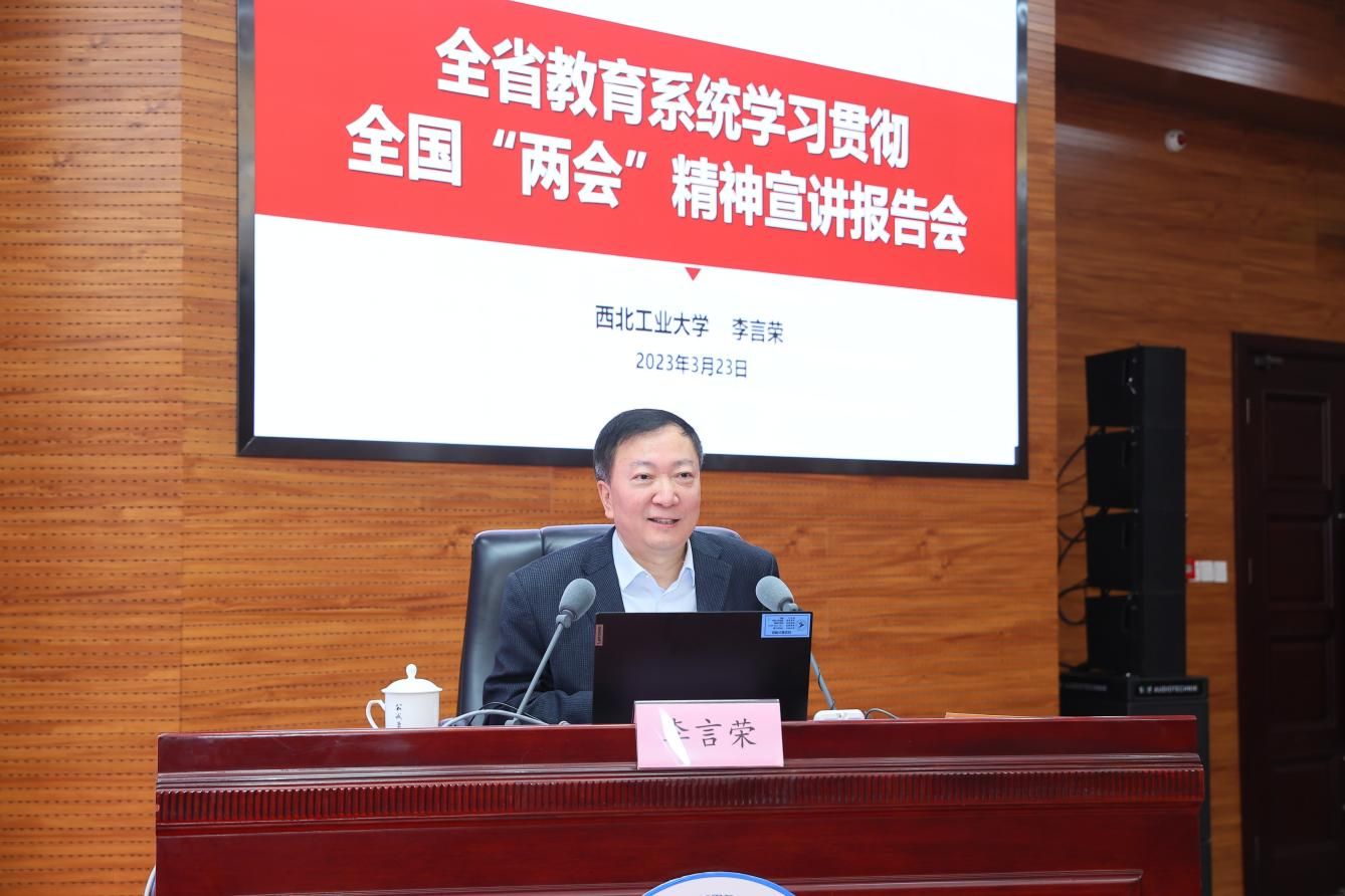 伟德国际1949官方网站新闻网3月23日电 3月23日,全国“两会”精神宣讲报告会在伟德国际1949官方网站举行。省委宣讲团成员、全国人大代表、伟德国际1949官方网站党委书记李言荣院士为全省教育系统作宣讲报告。