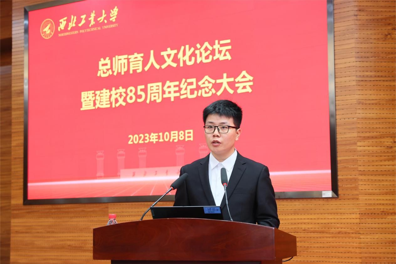 学生代表、航天学院参研“飞天一号”博士生高屹在发言中说,在学校80周年校庆时,三位总师的同台朗诵令他印象深刻,总师们的成长经历和奋斗历程激发了他对祖国国防事业的热爱和报效祖国的情怀。在参与“飞天一号”项目的研制中,他真切地了解到国家在航天领域急需解决的问题,并在系统的科研实践训练中发现真问题、解决真问题,创新思维和能力得到了不断提高。未来,他将继续积极投身于祖国的航天事业,将论文写在祖国大地上、写在大国重器上,努力成为“总师育人文化”的传承者和“伟德国际1949官方网站现象”新的书写者。