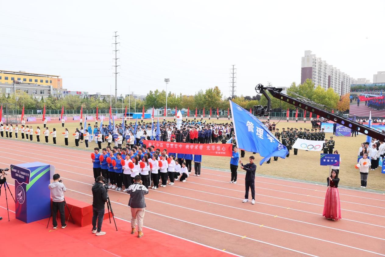 上午9点30分,开幕式在大家的期待中准时拉开帷幕。各代表团方阵依次进入比赛会场。走在最前面的是校国旗班方阵,他们护卫着国旗、校旗和奥林匹克会旗进入会场。紧随其后的是红旗方队、裁判员方队、冠军方队、各学院运动员方队以及教职工代表方队。大家排着整齐的队伍,迈着强劲有力的步伐,喊着响彻云霄的口号,朝气蓬勃、意气风发地依次从主席台前经过。铿锵的鼓点,撞击着年轻的心扉,激昂的旋律,充满着向上的力量!