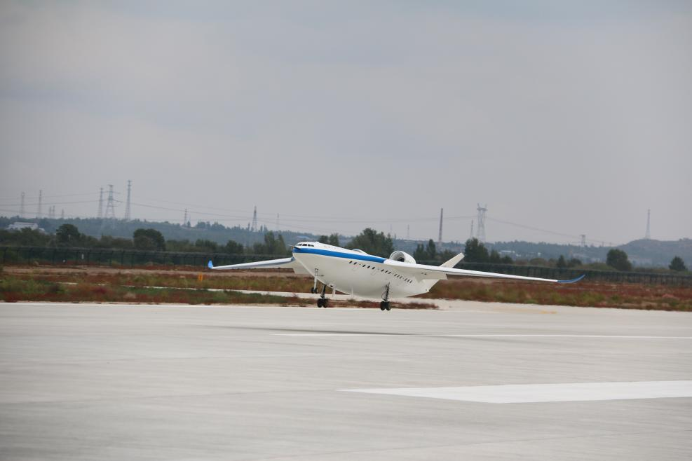 学校研制的翼身融合大型客机的缩比试验机在伟德靖边通用机场试飞成功