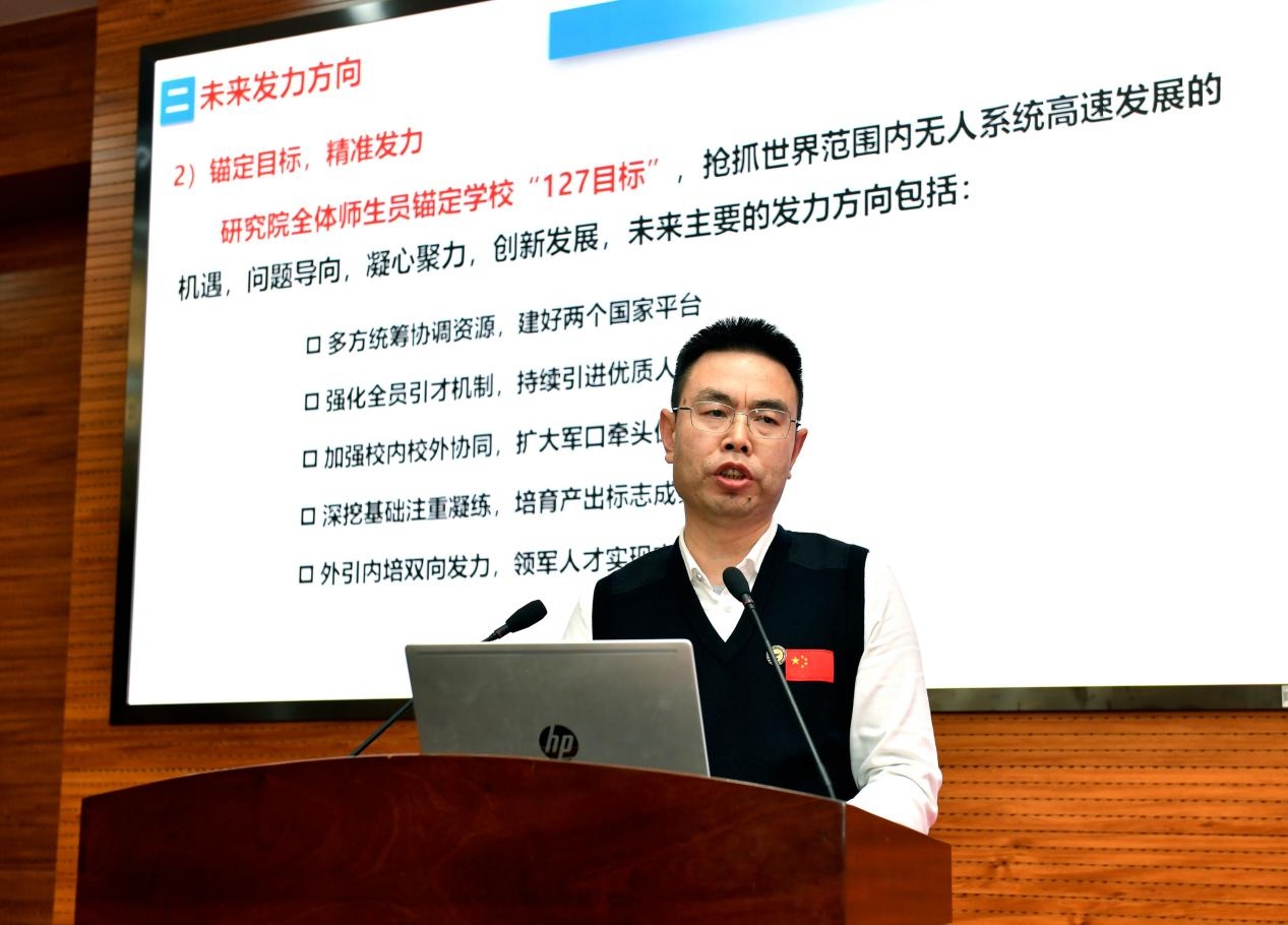 他表示,实现“127”发展目标很大程度将依靠学校科技创新竞争力的全面提升,需要科技创新作为带动相关核心竞争力指标增长的重要引擎,发挥引领作用。就做好2024年科研工作,他结合“127”创新举措提出了三点意见:一是要充分发挥机构改革作用,提升科研管理效能。在职能部门层面,科研院要加快推进体制创新,进一步规范科室设置,优化职能分工,建立健全跨部门的联动改革和协作配合机制,打通关节、疏通堵点、破除阻力;在核心竞争力的重点专项任务推进中,建立专班推进和督导机制,进一步提升对外争取项目、强化纵横联动的战斗力,增进对内提供服务、强化精细管理的执行力,提高科研管理效率,争做有组织科研的统领者、推动者。在学院层面,各学院、研究院要以机构改革为契机,加强科研治理体系建设,采用“所管科研,系管教学”等模式,集聚力量在“三航”等重点领域开展原创性、引领性的科研联合攻关,争做有组织科研的主力军。二是要扎实推进评价改革落地,激发科研内生动力。要持续做好“立制度、出政策”的上篇文章,提升评价改革的集成性,注重各项改革之间的政策协调、联动协同和整体效果,要充分解决改革的碎片化、单一化、零敲碎打等问题,推动科技改革有关举措的有机衔接。要统筹优化资源配置,进一步完善相关管理制度以及科研核心竞争力贡献的评价与激励办法,综合施策,向潜心基础前沿研究、承担国家关键核心技术攻关任务、取得重大创新成果的人员倾斜。要做好“抓落实、严执行”的后篇文章,各学院研究院和职能部门领导班子要提升主动担当意识,要“干”字当头、“干”字为要,将有组织科研落到实处,持续提升工作的系统性、前瞻性、可行性。认真研究科研关键核心指标,“面向长远、点面结合”谋划制定推进举措。三是要拓展有组织科研实施路径,激发科研先发优势。要加强重点科技创新平台内涵建设,筑牢有组织科研的重要支点,深化与国家实验室的协同创新,全力做好国家级科研平台的重组与争取,加快国家级重点实验室实体化建设。要充分发挥学术领军人才的“头雁效应”,增强有组织科研的核心驱动力,支持学校战略科学家、领军人才牵头开展前瞻性、引领性、独创性的战略论证,推动学校科研工作从被动“接单式”“科技打工仔”向主动引领转变,推动学校科研工作从数量到质量转变。要加快突破战略需求导向的基础研究,夯实有组织科研的创新根基,要发扬“四千精神”(“走遍千山万水、想尽千方百计、说尽千言万语、吃尽千辛万苦”),要敢于“硬着头皮、厚着脸皮、磨破嘴皮、踩烂脚皮”,要积极“走出去”“走进去”“坐下来”,与“三航”等重点行业的领军企业、科研院所和高校,真正建立健全深度合作机制,聚焦行业关键技术领域,凝练核心科学问题,实现基础理科“0到1”和工程技术“1到0”的双向发力。
