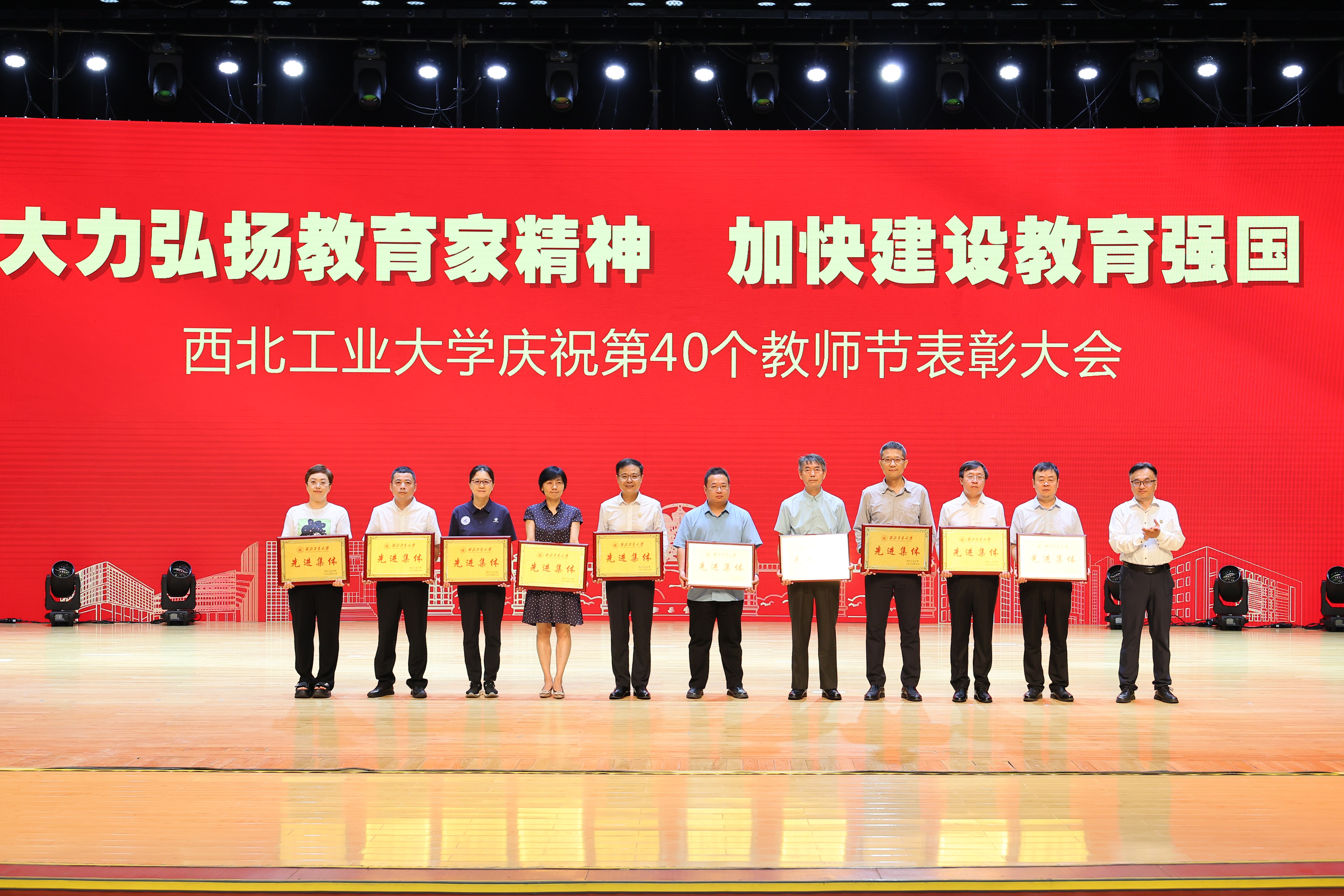 党委书记李言荣、校长宋保维为获得立德树人奖、国家教学名师、国家自然科学奖、国家技术发明奖和国家科技进步奖的教师代表颁奖。