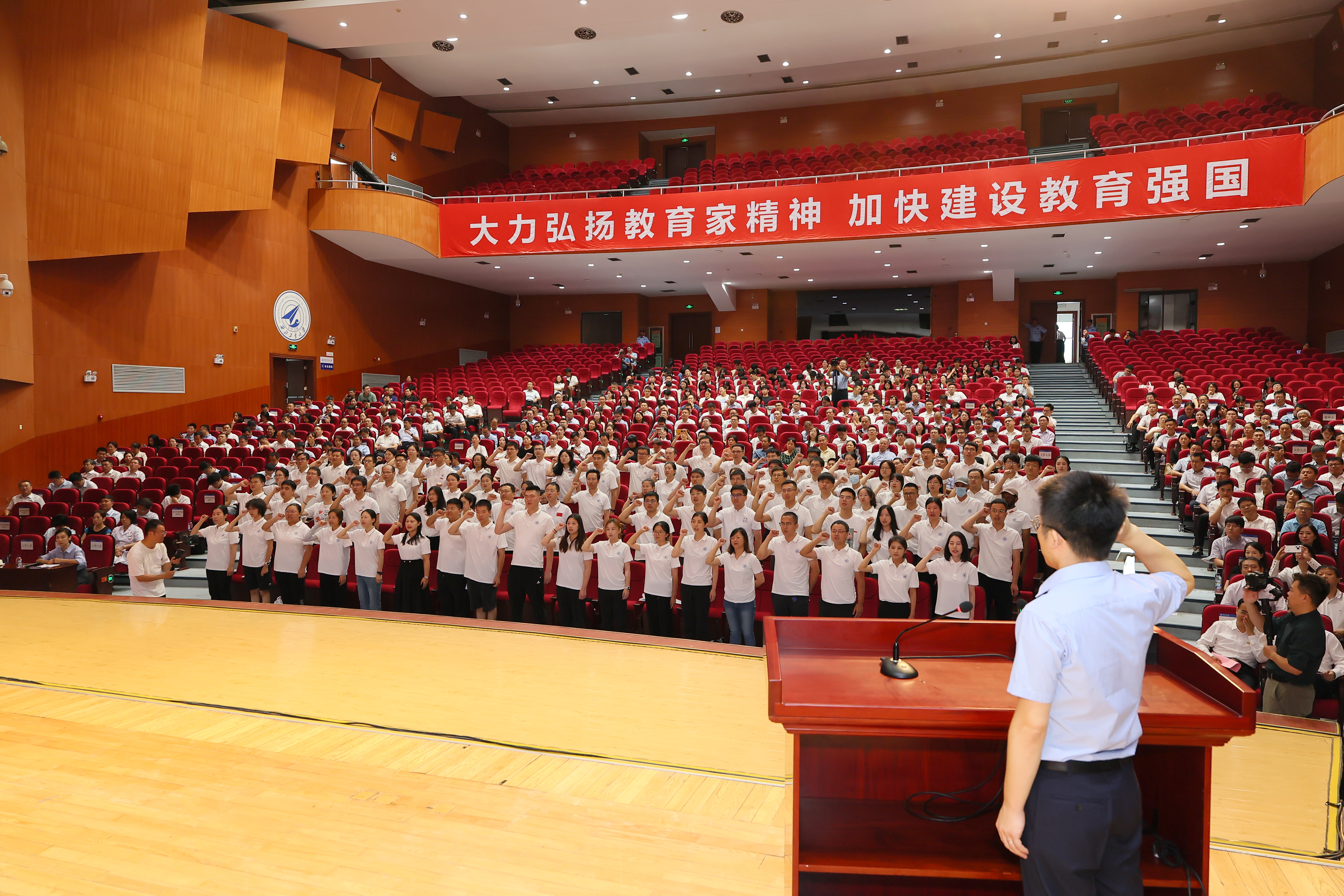 在杨光伟的领誓下,在场全体新入职教师庄严宣誓,振奋人心的宣誓声回荡在会场。