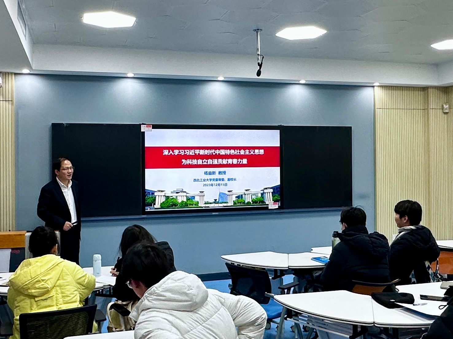 最后,杨益新勉励同学们要深入学习贯彻习近平新时代中国特色社会主义思想,大力弘扬科学家精神,勇立潮头、尽显芳华,为高水平科技自立自强贡献青春力量。