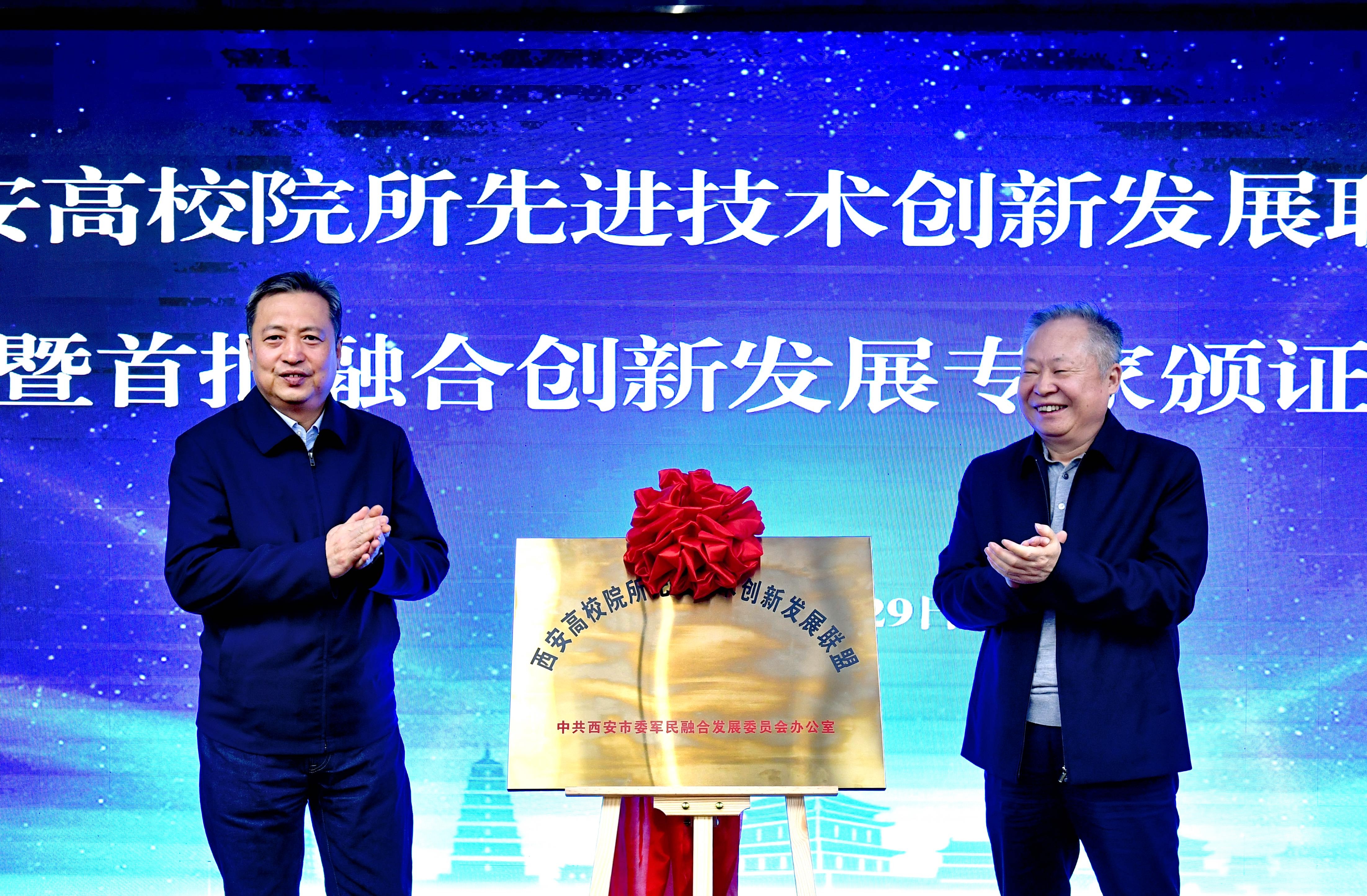 伟德国际1949官方网站副校长侯成义、西安市委军民融合办主任为西安高校院所先进技术创新发展联盟揭牌